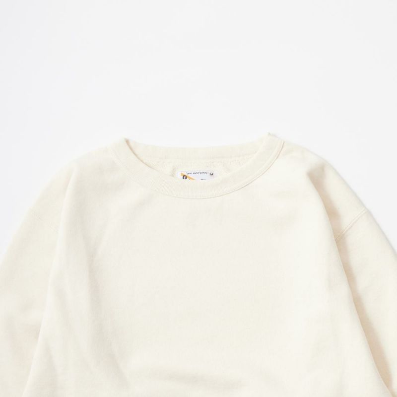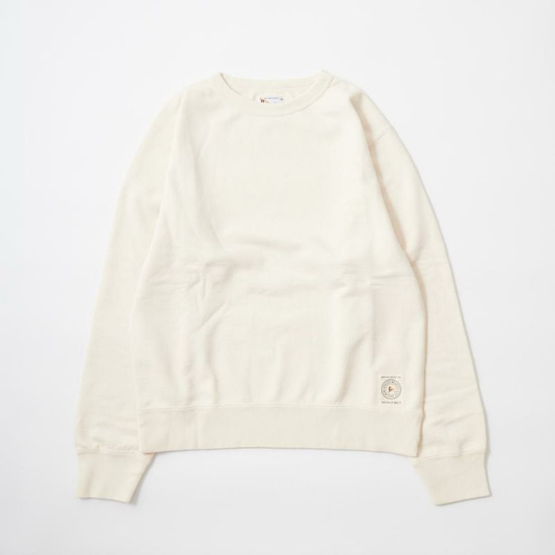 FELCO(フェルコ)の12oz TERRY BINDER CREW SET IN SWEAT。12オンスのフレンチテリー(裏起毛していないスウェット生地)素材を使用したセットインスリーブの長袖スウェットシャツ。襟元はバインダーネック。袖と裾のリブはヴィンテージライクな長めのリブ仕様。全体的に程よいゆとりのあるリラックスシルエット。左袖口と左裾のワッペンとタグがアクセント。シンプルで癖の無い使い勝手の良い1着。