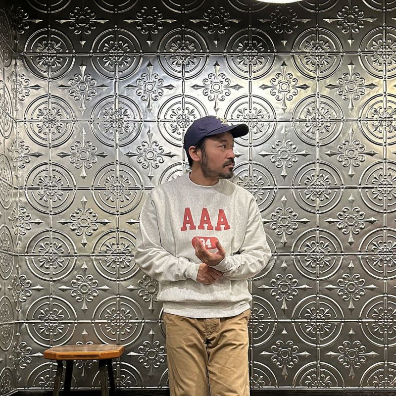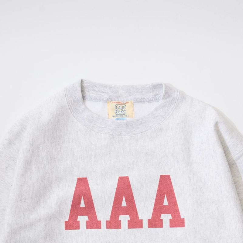 カリフォルニア発のブランドCALIFOLKS(カリフォークス)のCHAMPION REVERSE WEAVE CREW NECK SWEAT。アメリカ流通のCHAMPION(チャンピオン)のリバースウィーブのクルーネックスウェットをボディに使用したプリントスウェット。カリフォークスのオリジナルのプリントが良い雰囲気。派手過ぎるデザインではなくスタイリングに取り入れやすいプリント。