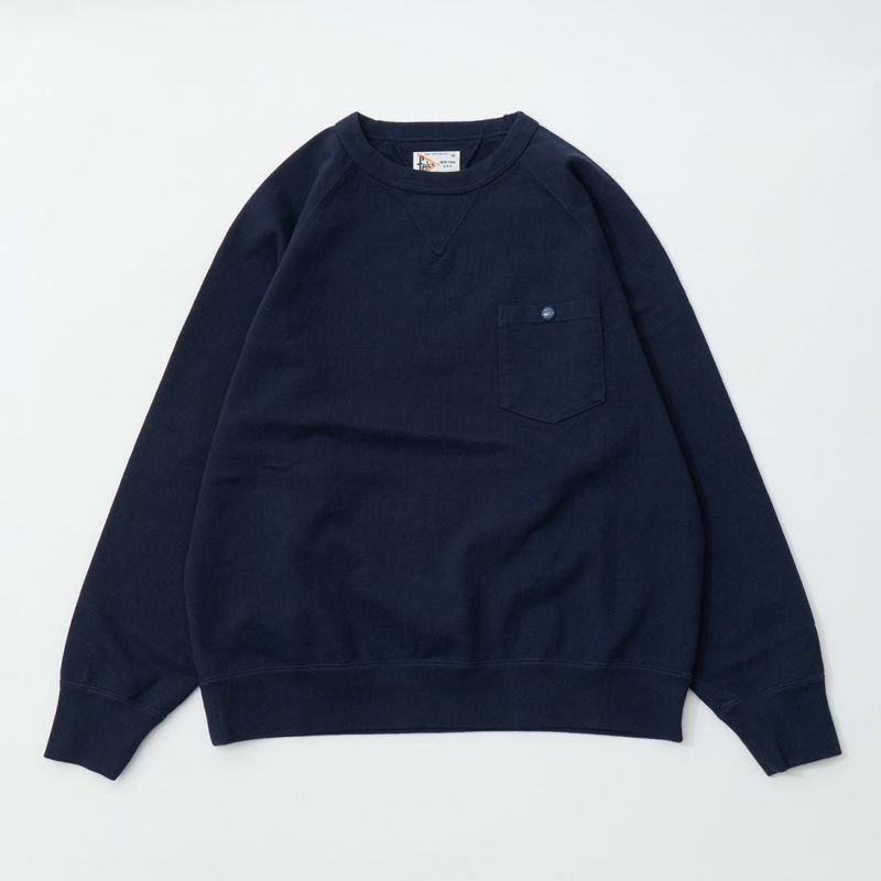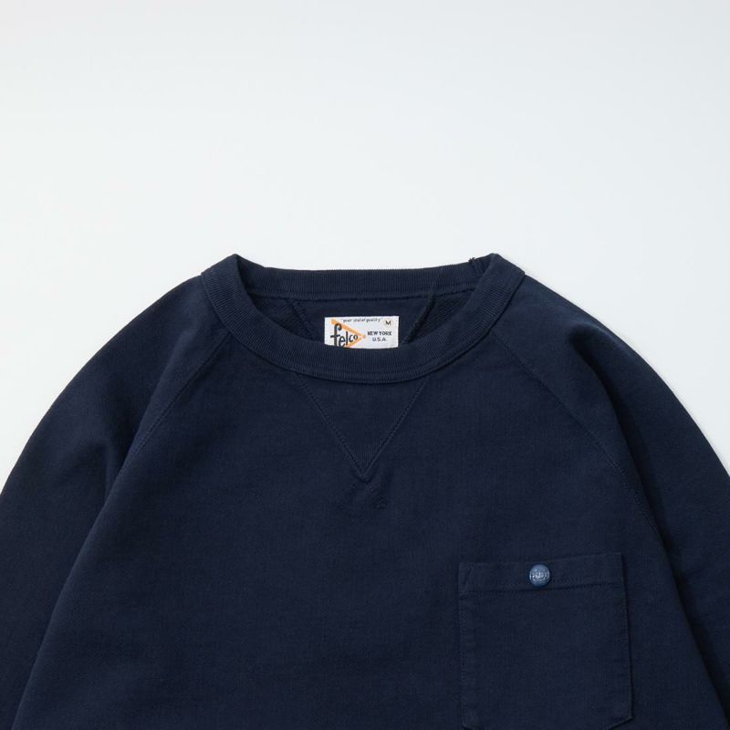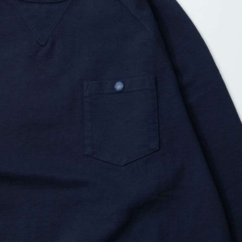 FELCO (フェルコ) 16oz INLAY ALL SEAM RAGLAN V GUSSET CREW W/CHEST SNAP POCKET - AMERICAN NAVY