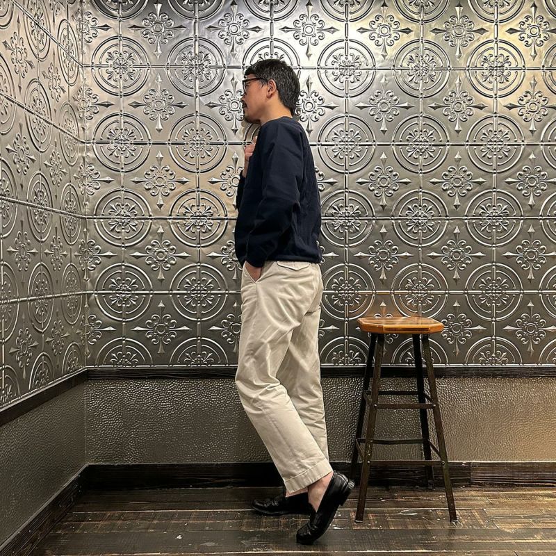 16オンス インレイ ラグラン 両V クルーネック 日本製