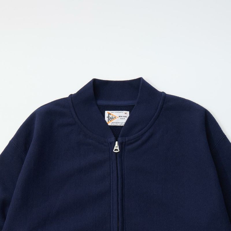 FELCO (フェルコ) CLASSIC FIT INVERSE WEAVE ZIP BASEBALL NECK SLASH POCKET 16oz HEAVY WEIGHT TERRY - ITALIAN NAVY