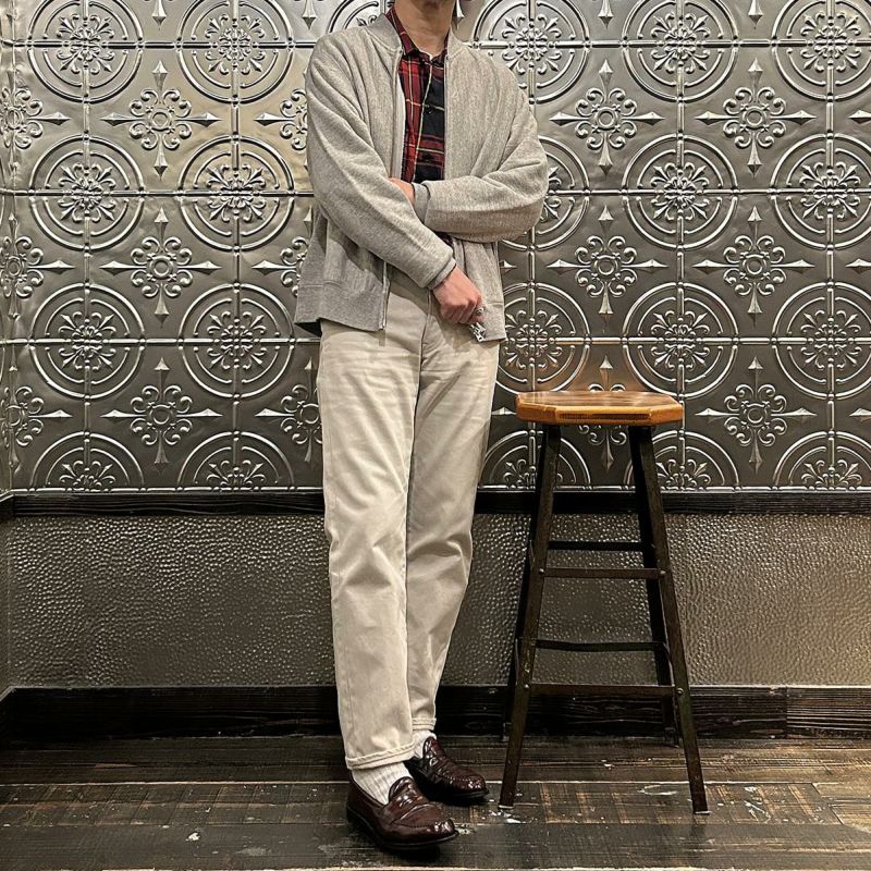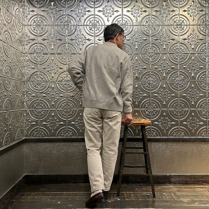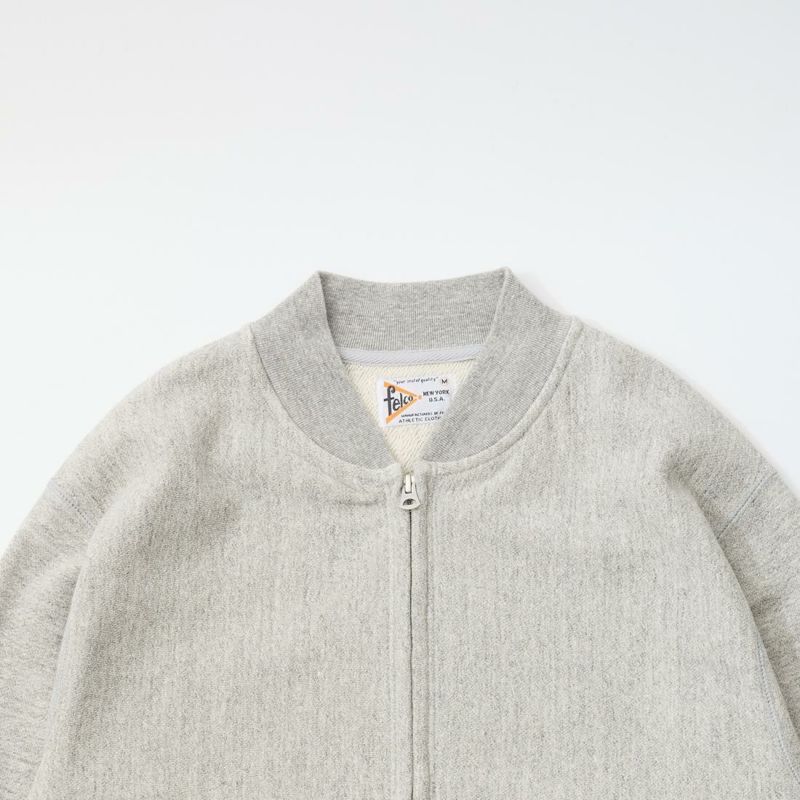 FELCO(フェルコ)のCLASSIC FIT INVERSE WEAVE ZIP BASEBALL NECK SLASH POCKET 16oz HEAVY WEIGHT TERRY。程よい厚みとコシのある16オンスのヘビーウェイトのフレンチテリー(裏起毛していないスウェット生地)素材のジップフロントのベースボールカラージャケット。生地を横向きに使用することで縦縮みを軽減し、サイドリブが横縮み防止と動きやすさを実現したインバースウィーブ仕様。。腰部分の左右にスラッシュポケットを装備。袖と裾のリブは長めのヴィンテージスウェット仕様。全体的にゆとりを持たせたクラシックフィット。