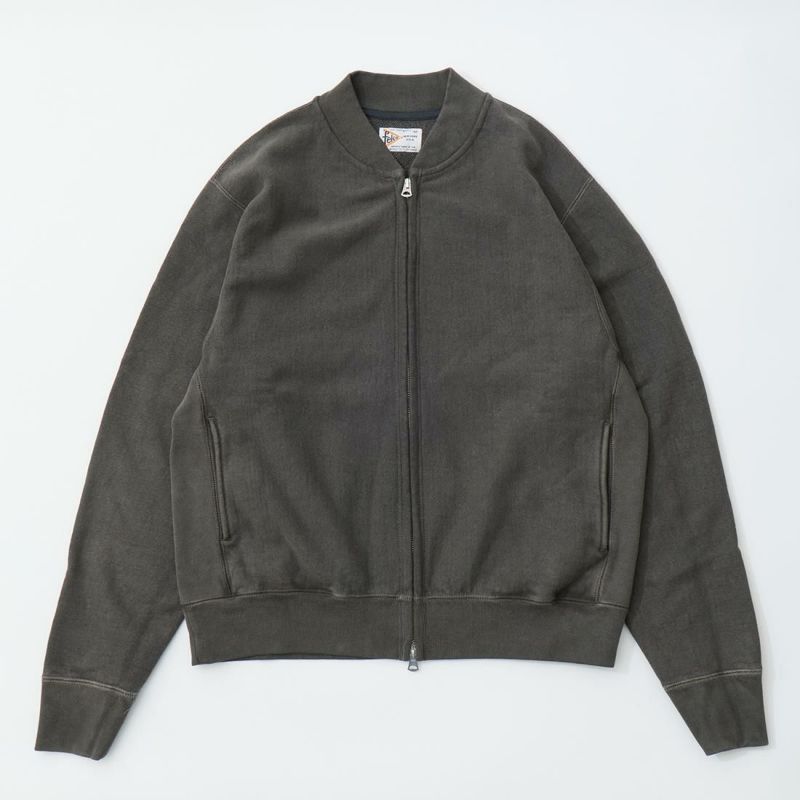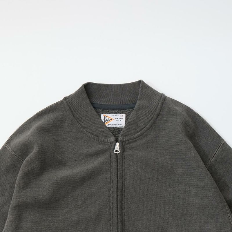 FELCO(フェルコ)のCLASSIC FIT INVERSE WEAVE ZIP BASEBALL NECK SLASH POCKET 16oz HEAVY WEIGHT TERRY。程よい厚みとコシのある16オンスのヘビーウェイトのフレンチテリー(裏起毛していないスウェット生地)素材のジップフロントのベースボールカラージャケット。生地を横向きに使用することで縦縮みを軽減し、サイドリブが横縮み防止と動きやすさを実現したインバースウィーブ仕様。。腰部分の左右にスラッシュポケットを装備。袖と裾のリブは長めのヴィンテージスウェット仕様。全体的にゆとりを持たせたクラシックフィット。