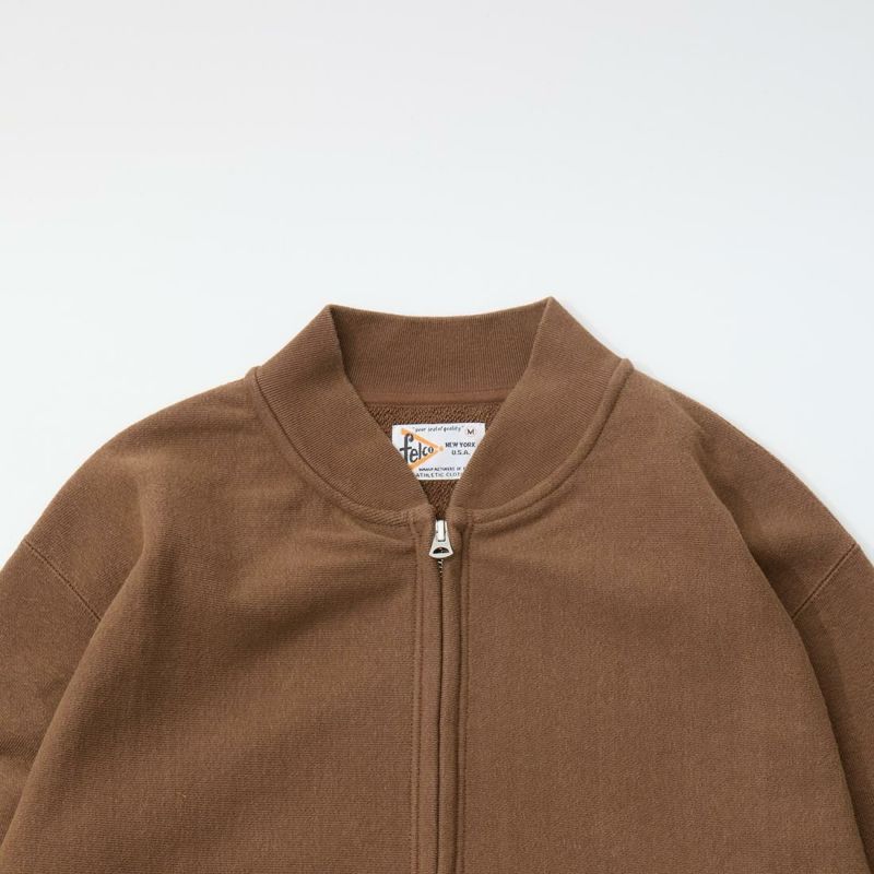 FELCO (フェルコ) CLASSIC FIT INVERSE WEAVE ZIP BASEBALL NECK SLASH POCKET 16oz HEAVY WEIGHT TERRY - BW BROWN