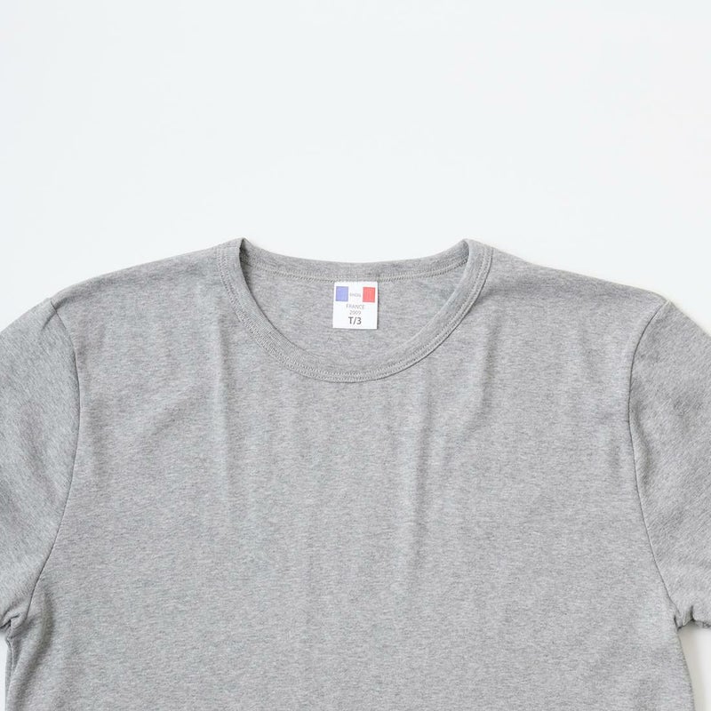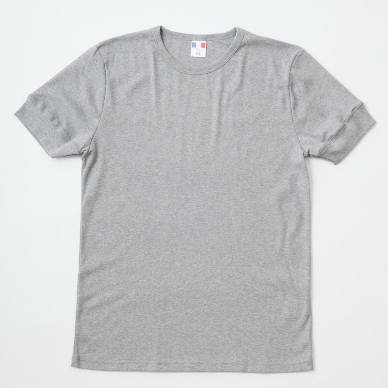 フランス創業のカットソーブランド「BANDOL(バンドール)」の S/S 1X1 RIB COTTON MILITARY CREW TEE。ベーシックなリブ編みの生地を使用した半袖のクルーネックTシャツ。古い年代のアンダーウェアに見られる様な、幅広のリブを袖に付けたクラシックな雰囲気のデザイン。首元の開きも若干の余裕を持たせてあり、インナーとして着用した時のバランスに配慮しています。首元のタグにはフランスの象徴でもあるトリコロールカラーのロゴが入ります。