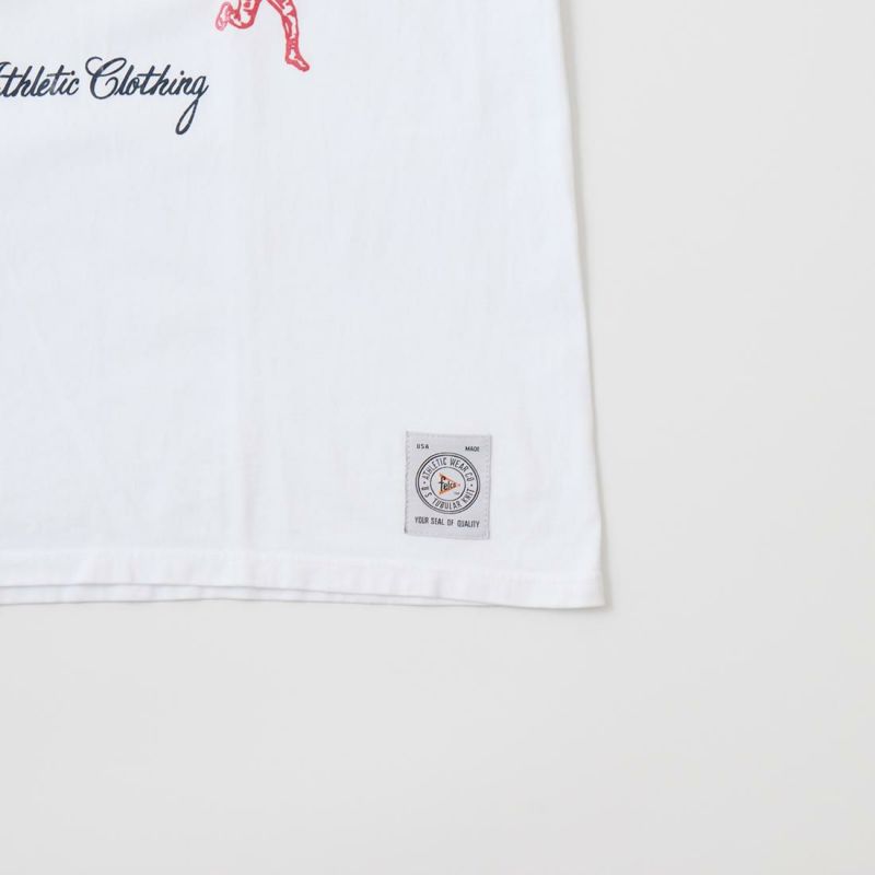 アメリカ発「FELCO」のS/S CREW NECK POCKET T SHIRT。縫い目のない丸胴ボディのクルーネックポケットT。アスレチックブランドであるFELCOらしい、野球・アメフト・アイスホッケー・バスケットボールのスポーツプリントがデザインされています。やや短めの着丈でリラックス感のある、アメリカらしいボックスシルエットが特徴です。年々減少しつつあるアメリカ製というのも大きな魅力。クルーネックはバインダーの仕様で伸びにくく、ヘビーに使って頂けます。こちらはアスレチックブランドであるFELCOらしい、野球・アメフト・アイスホッケー・バスケットボールのスポーツプリントがデザインされています。またプリントはラバープリント仕様で、着込んでいくうちにひび割れがでてくるのでヴィンテージ感も楽しんで頂けます。