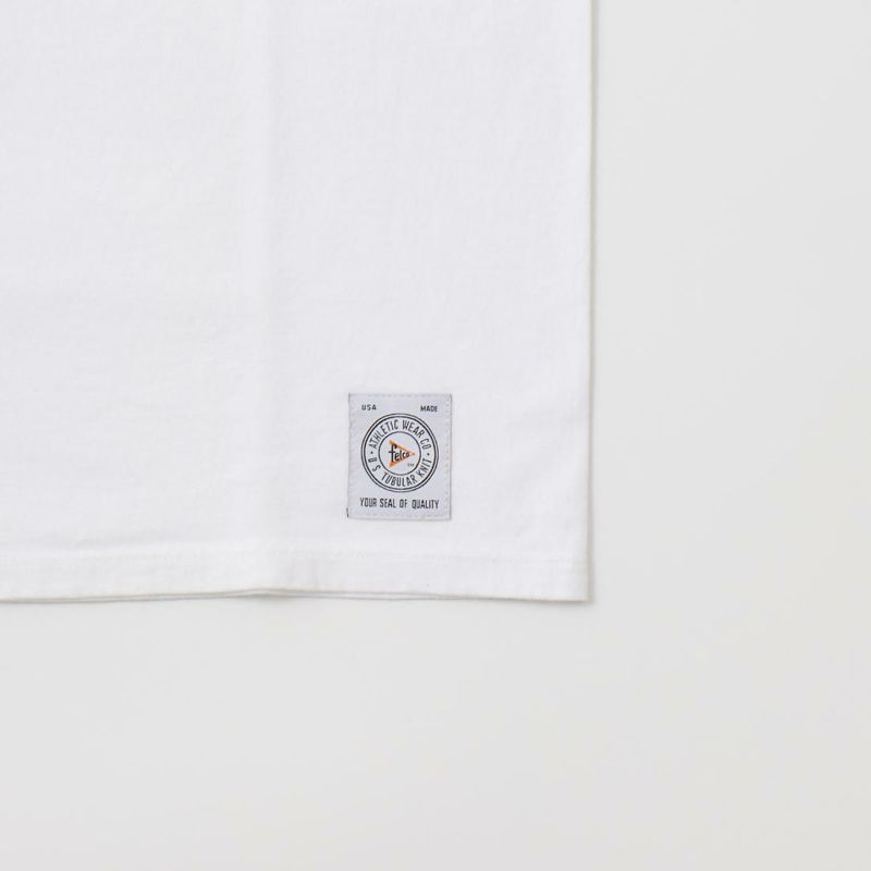 アメリカ発「FELCO(フェルコ)」のS/S CREW NECK POCKET T W/PRINT - EAGLE。縫い目のない丸胴ボディのクルーネックポケットTシャツ。アスレチックブランドであるFELCOらしいスポーツティー感漂うデザイン。 またフロントには染め込みプリント入りの洗いかかったヴィンテージ感溢れる仕上がりが良い雰囲気。やや短めの着丈でリラックス感のある、アメリカらしいボックスシルエットが特徴。年々減少しつつあるアメリカ製というのも大きな魅力。クルーネックはバインダーの仕様で伸びにくく、ヘビーに使って頂けます。