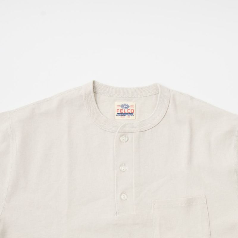 HEALTH KNIT(ヘルスニット)とFELCO(フェルコ)のダブルネームとなるS/S HENLEY NECK POCKET-T U.S.COTTON OPEN END JERSEY。猫目ボタンを使用したヘンリーネックのポケットTシャツ。風合いの良いU.Sコットンを特注で編み立てた生地を使用。吸水性と速乾性に優れ、抗菌、防臭効果も備えた優れもの。左裾に付けられたFELCO(フェルコ)のワッペンがちょっとしたアクセントになっています。