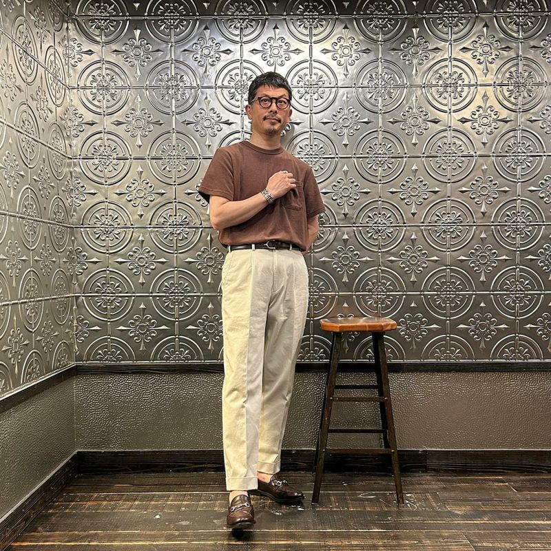 170センチ68キロの体型でMサイズは丁度良いサイズ。適度にゆとりがあるサイズで着られるのがお好みの方ならLサイズがオススメですね。蒸し暑い時期には外せない存在のパイル素材を使用したクルーネックTシャツ。シンプルなデザインですが、時々雰囲気を変えたい時に取り入れたくなるデザイン。肌触りの良いので着用感も抜群!!この夏間違いなく活躍してくれる1枚です。