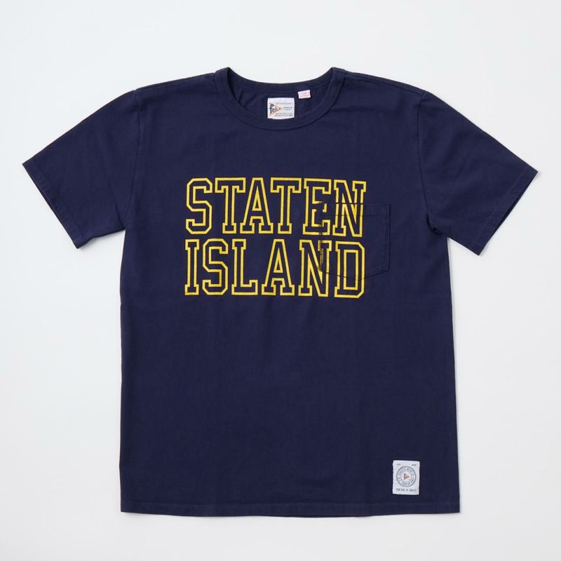 FELCO (フェルコ) MADE IN USA S/S CREW POCKET T W/PRINT STATEN ISLAND - WHITE