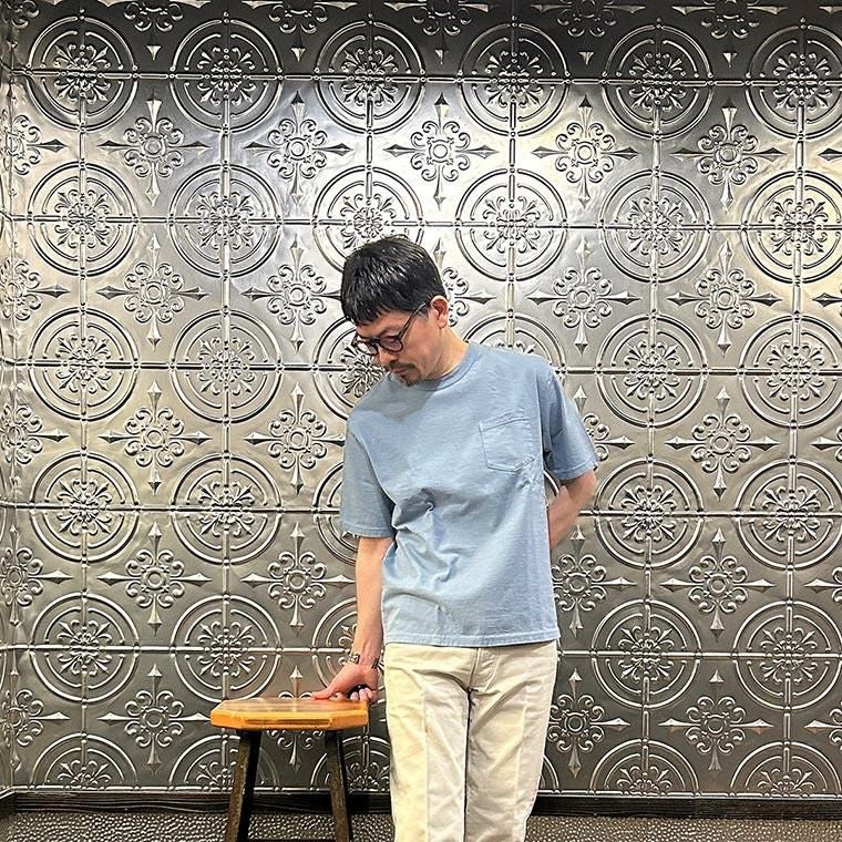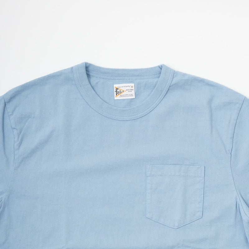 5. FELCO (フェルコ) S/S BINDER NECK POCKET TEE 7oz 18SINGLE JERSEY - VINTAGE WASH SAX