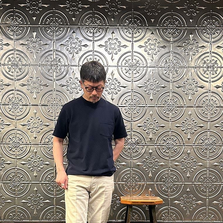 5. FELCO (フェルコ) S/S PIQUE POCKET CREW T 40/2 PIQUE - NAVY