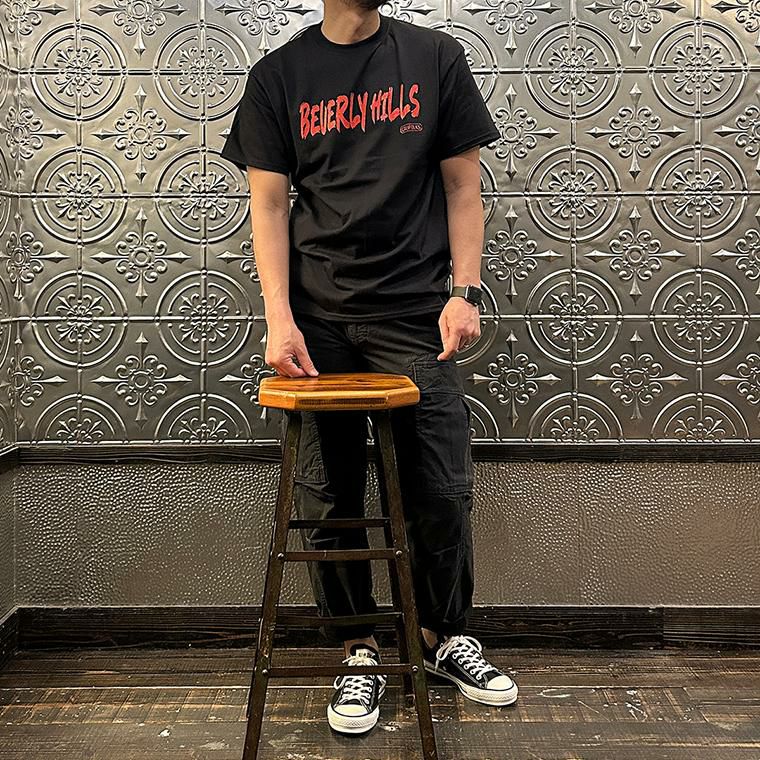 5. CALIFOLKS (カリフォークス) S/S WORD PRINT CHAMPION 6oz T-SHIRT - BEVERLY HILLS_BLACK