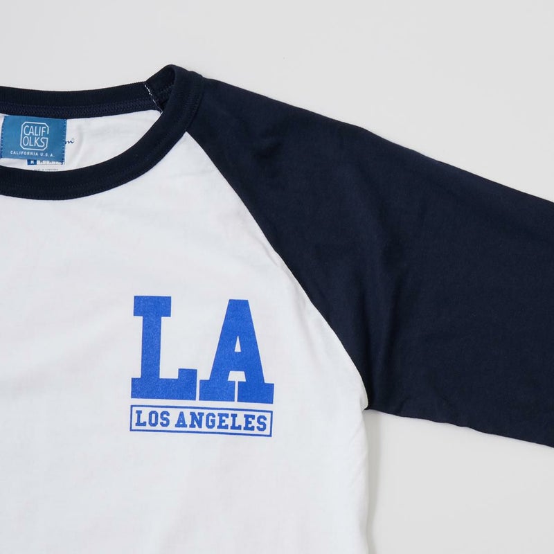 CALIFOLKS (カリフォークス) WORD PRINT CHAMPION BASEBALL T-SHIRT - WHITE_NAVY LA