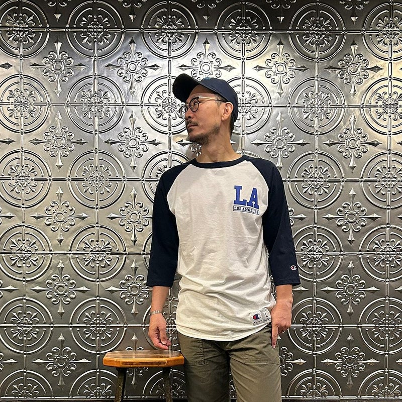 カリフォルニア発のブランドCALIFOLKS(カリフォークス)のWORD PRINT CHAMPION BASEBALL T-SHIRT。アメリカ流通のCHAMPION(チャンピオン)のラグランベースボールシャツをボディに使用。24秋冬シーズンは都市名がデザインモチーフ。左胸の都市名のプリントが良い雰囲気。ラグランスリーブの切り替えもスタイリングの良いアクセントに。