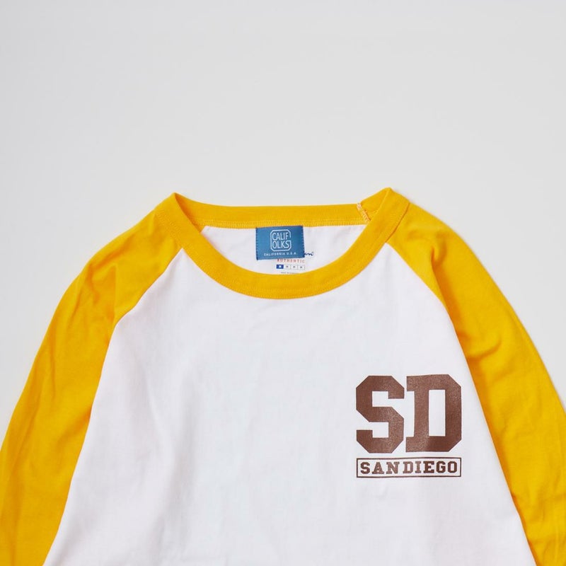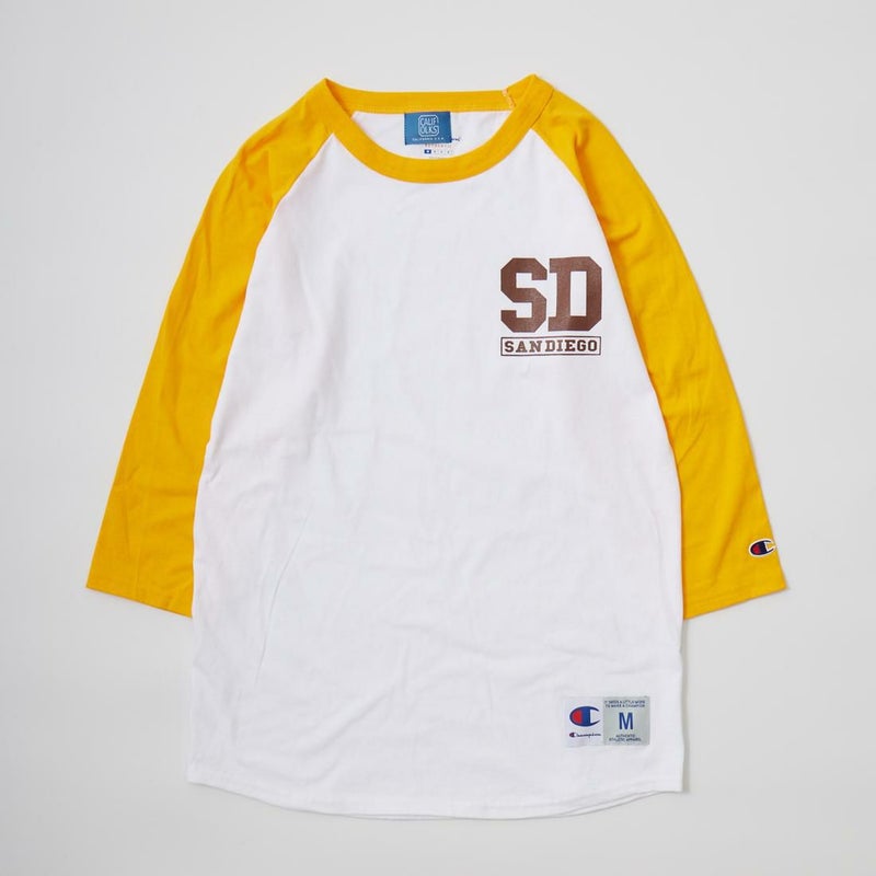 CALIFOLKS (カリフォークス) WORD PRINT CHAMPION BASEBALL T-SHIRT - WHITE_YELLOW SD