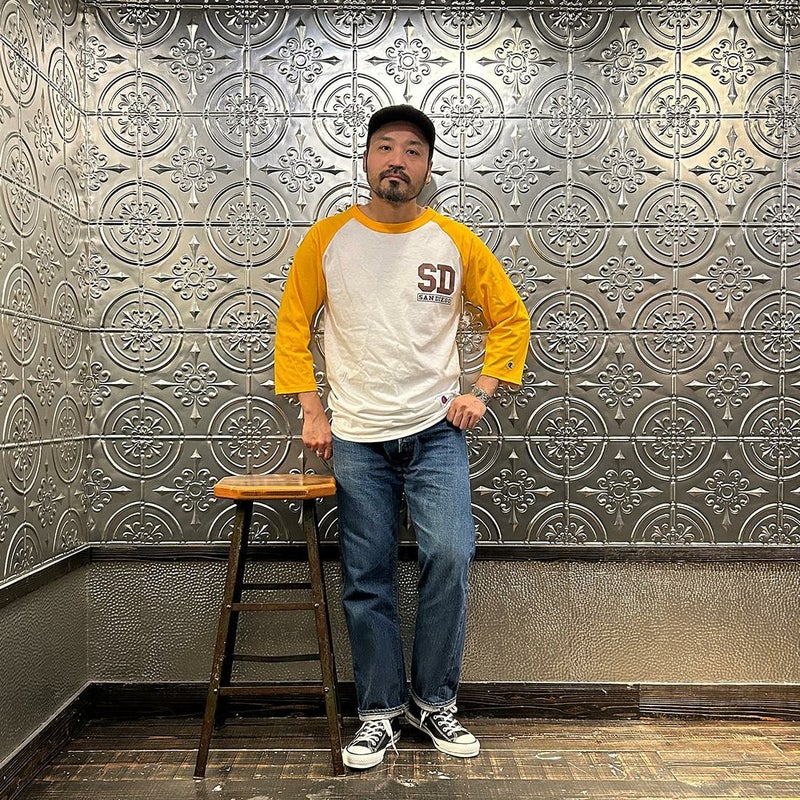 カリフォルニア発のブランドCALIFOLKS(カリフォークス)のWORD PRINT CHAMPION BASEBALL T-SHIRT。アメリカ流通のCHAMPION(チャンピオン)のラグランベースボールシャツをボディに使用。24秋冬シーズンは都市名がデザインモチーフ。左胸の都市名のプリントが良い雰囲気。ラグランスリーブの切り替えもスタイリングの良いアクセントに。
