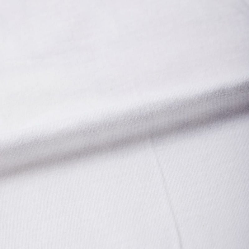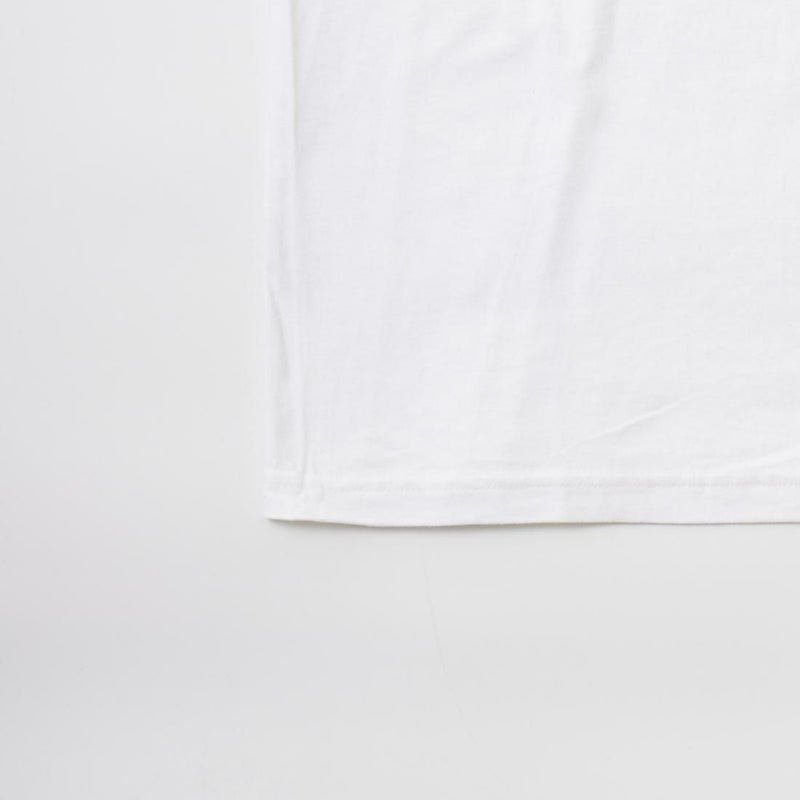 170センチ68キロで「L」でゆったりとしたサイズ感です。身幅、アームホール、肩幅は細くスッキリとしたつくり。「M」サイズだとピタッとしたタイトフィットな着用感です。普段よく穿くパンツ、ショーツのバランスから考えると「L」サイズのほうが丁度良いと思いました。様々なスタイリングで楽しめるTシャツ。音楽好きな方には堪らない1着ですね。