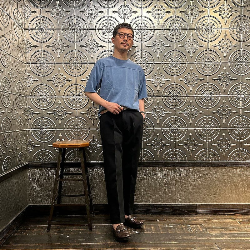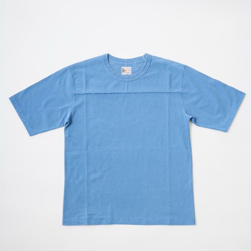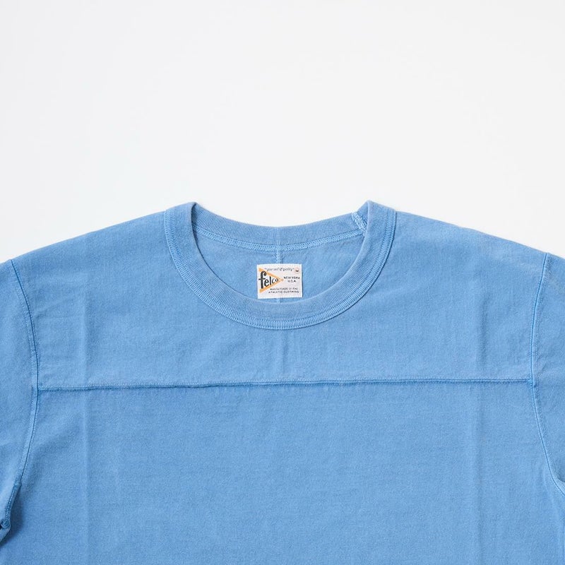 HEALTH KNIT(ヘルスニット)とFELCO(フェルコ)のダブルネームとなるHALF SLEEVE FOOT BALL T OPEN END JERSEY U.S.COTTON。風合いの良いU.Sコットンを特注で編み立てた生地を使用。シャリ感のある昔ながらの肌触りの素材。肩に縫い目のないオールドライクなフットボールシャツのデザインは体にフィットするように考え抜かれた1枚です。左裾に付けられたFELCO(フェルコ)のワッペンがちょっとしたアクセントになっています。