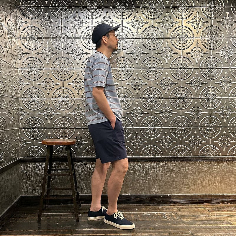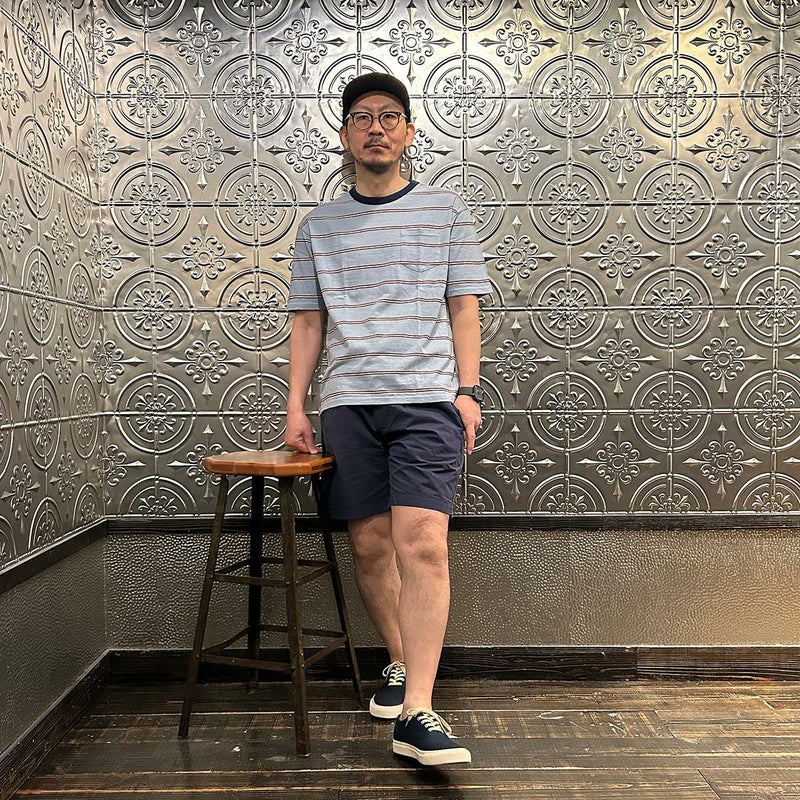 メンズ クルーネック ポケット ストライプ Tシャツ 日本製