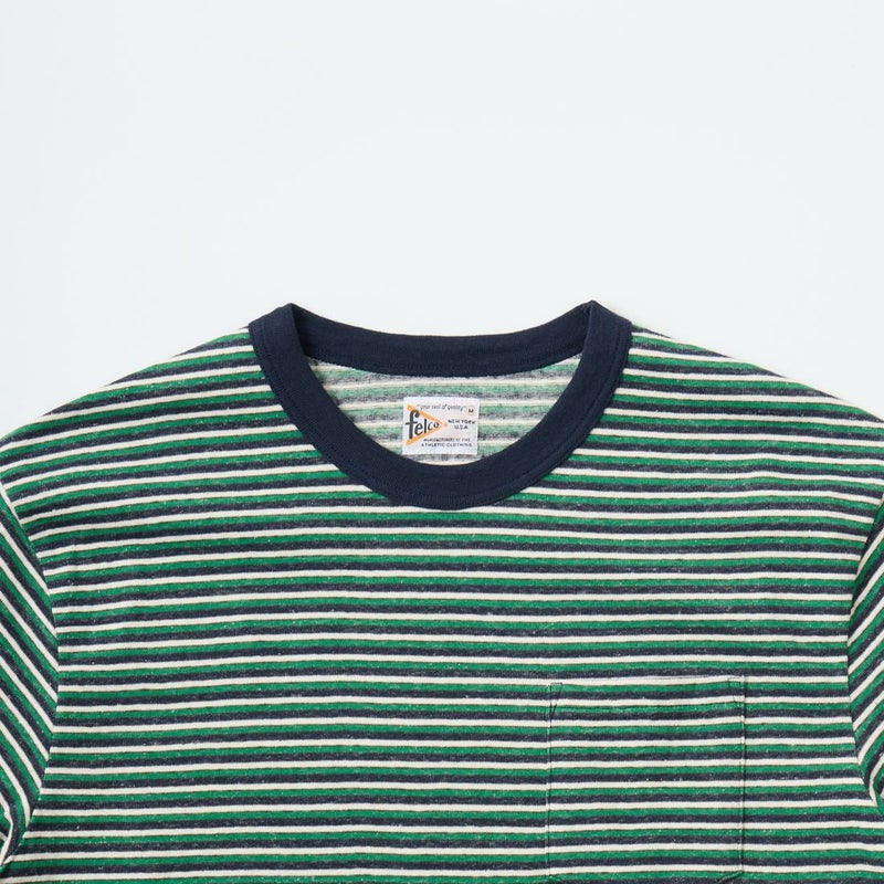 FELCO (フェルコ) S/S CREW POCKET TEE RECYCLE MULTI STRIPE - 4D.NAVY-GREEN&WHITE