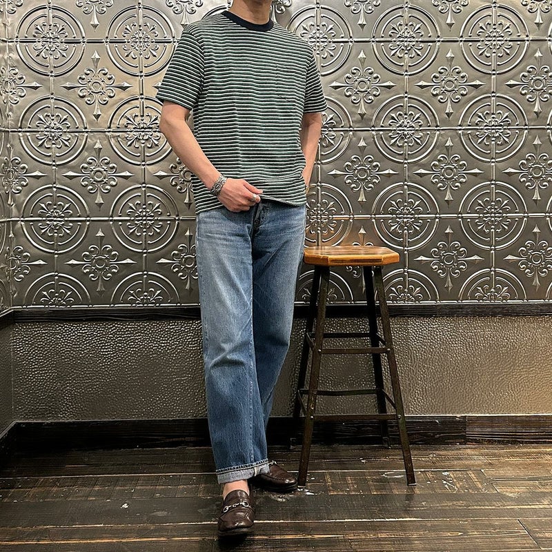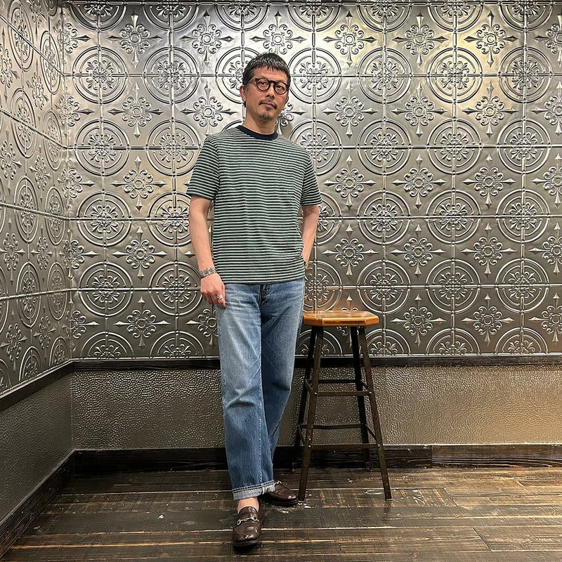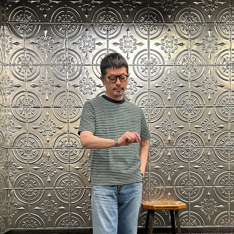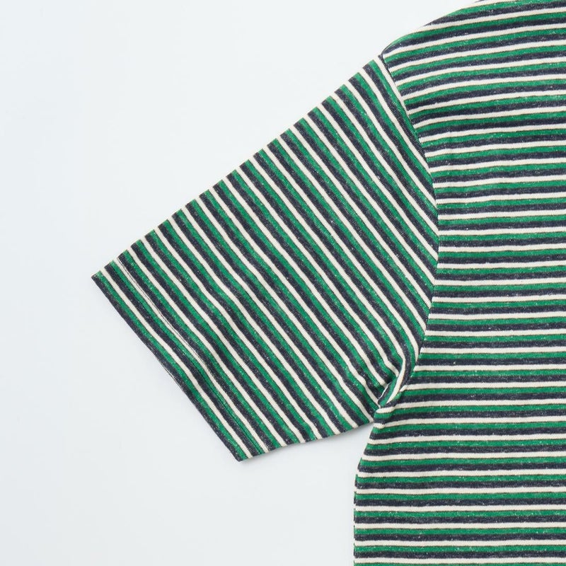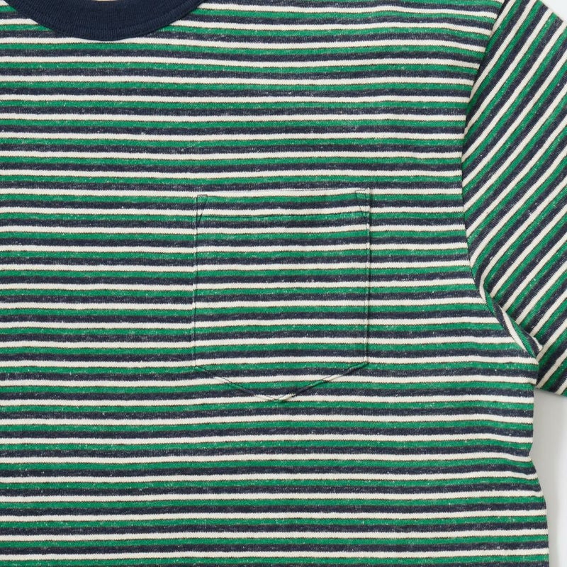 7. FELCO (フェルコ) S/S CREW POCKET TEE RECYCLE MULTI STRIPE - 4D.NAVY-GREEN&WHITE