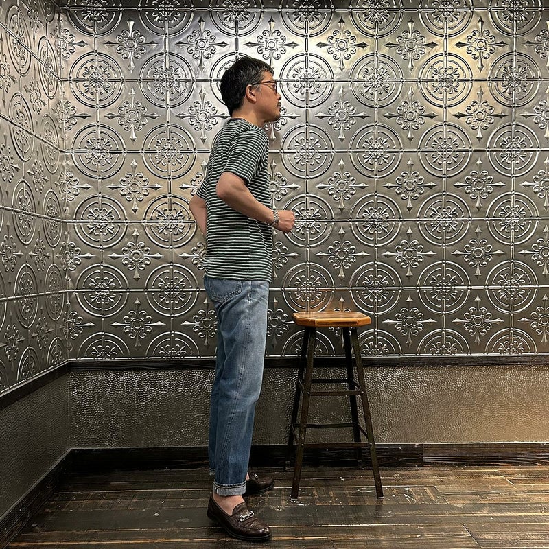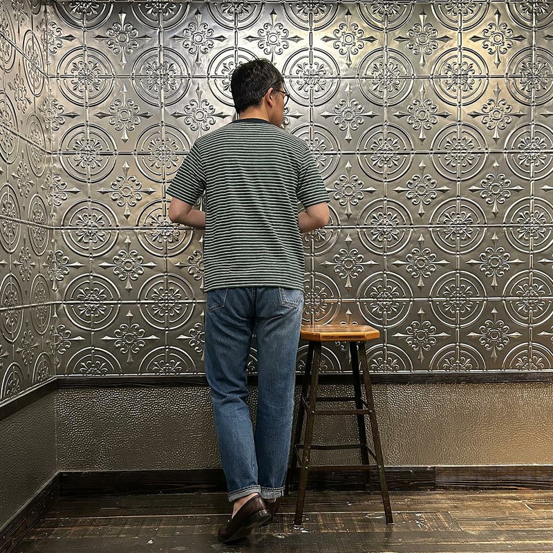 メンズ クルーネック ポケット ストライプ Tシャツ 日本製