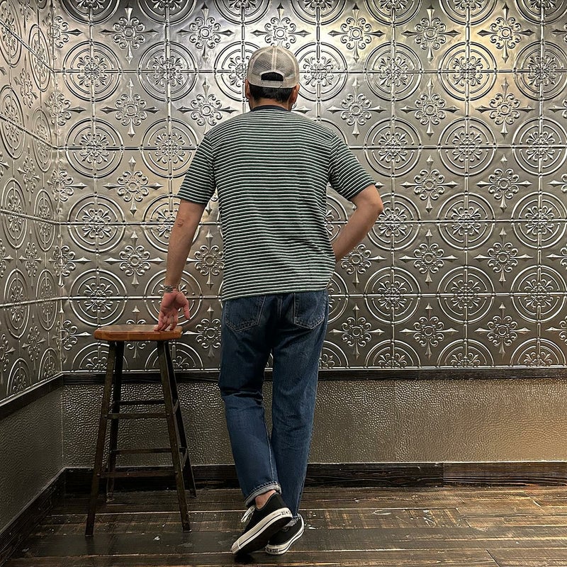 5. FELCO (フェルコ) S/S CREW POCKET TEE RECYCLE MULTI STRIPE - 4D.NAVY-GREEN&WHITE