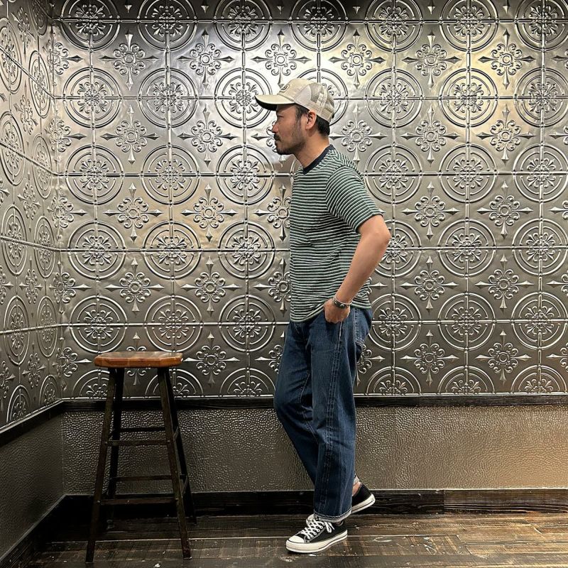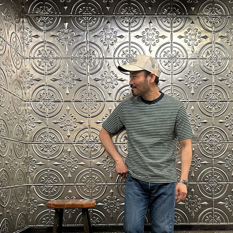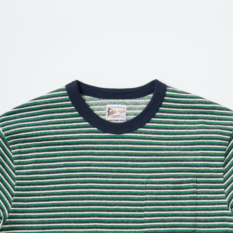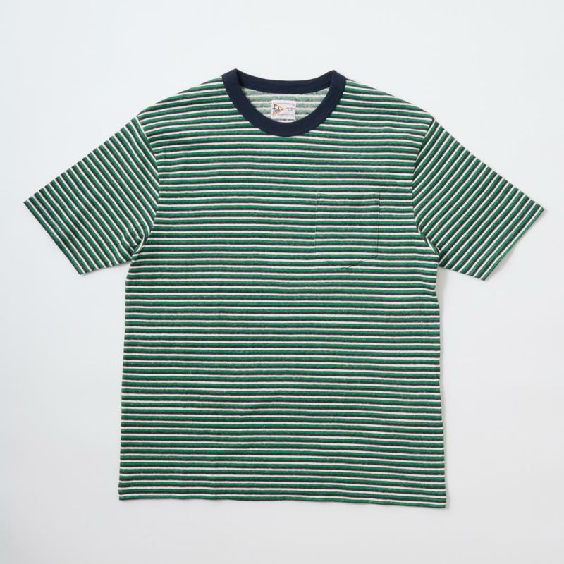 FELCO (フェルコ) S/S CREW POCKET TEE RECYCLE MULTI STRIPE - 2OLIVE-ORANGE&WHITE