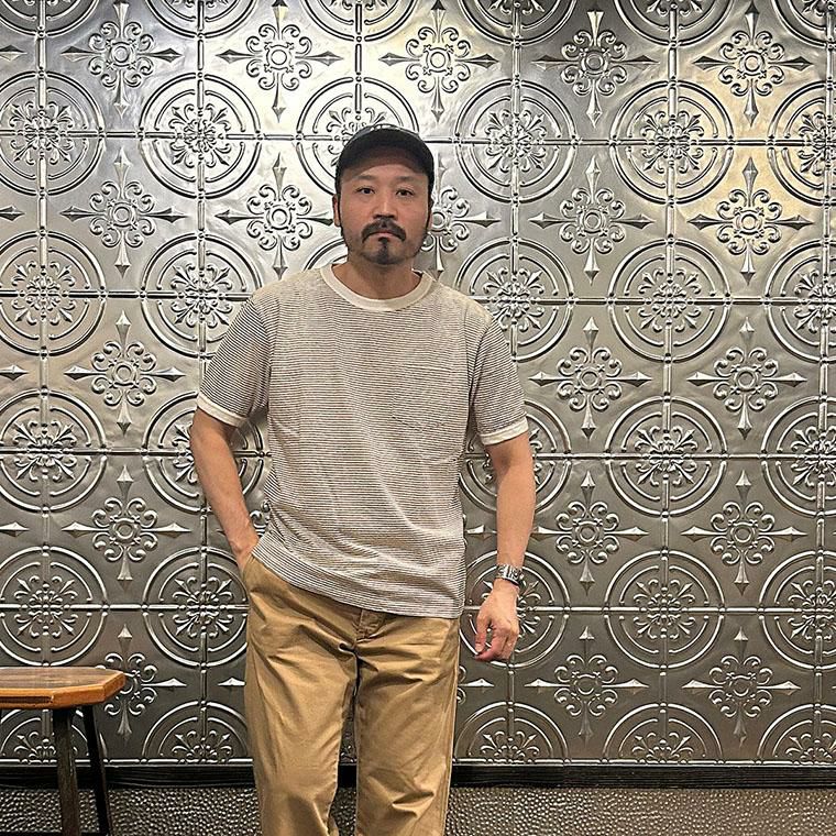 他の画像を見る メンズ リンガー ポケットTシャツ ヴィンテージストライプ 日本製 FELCO (フェルコ) S/S RINGER POCKET TEE VINTAGE STRIPE - NATURAL NAVY ¥ 7,920 税込 お気に入りに登録する
