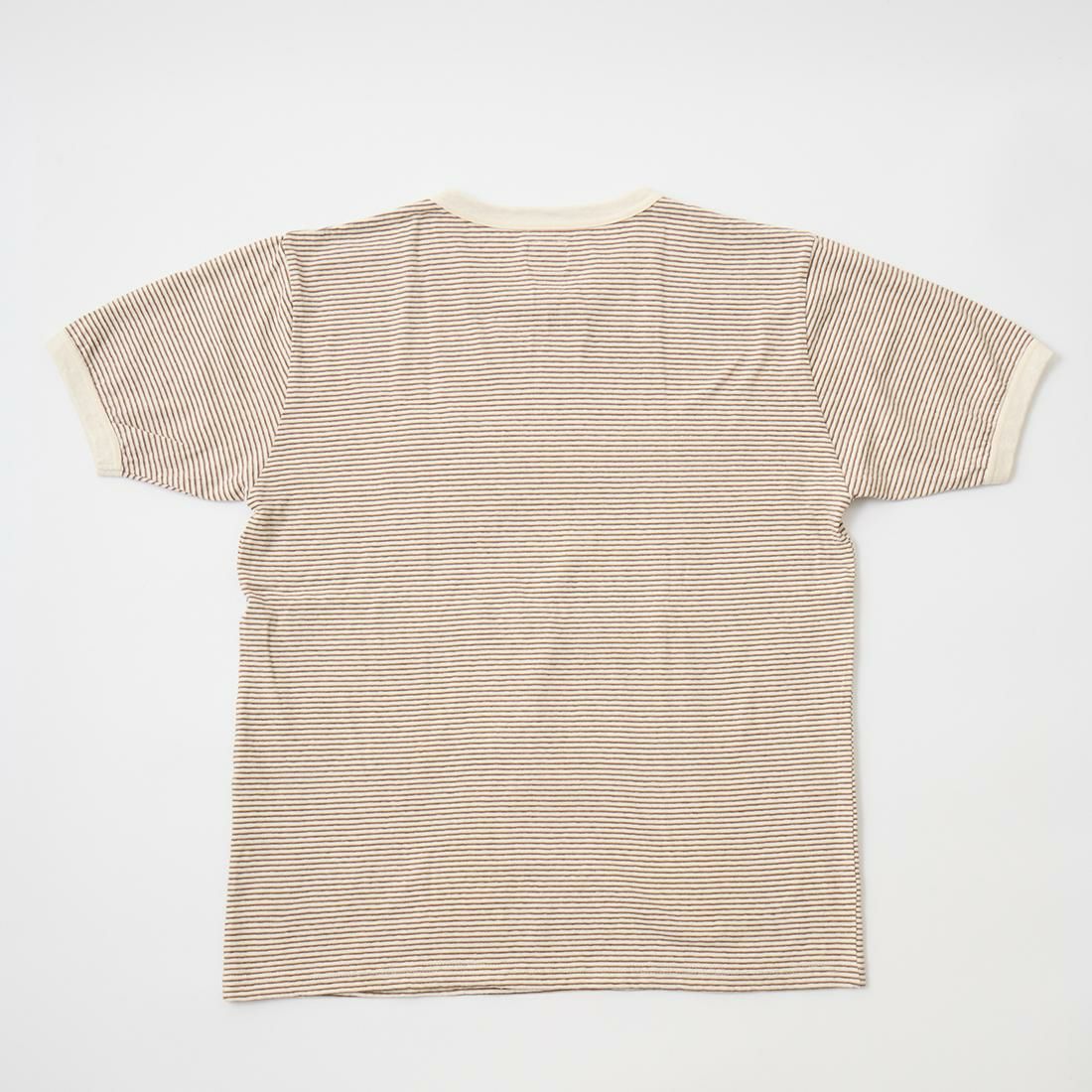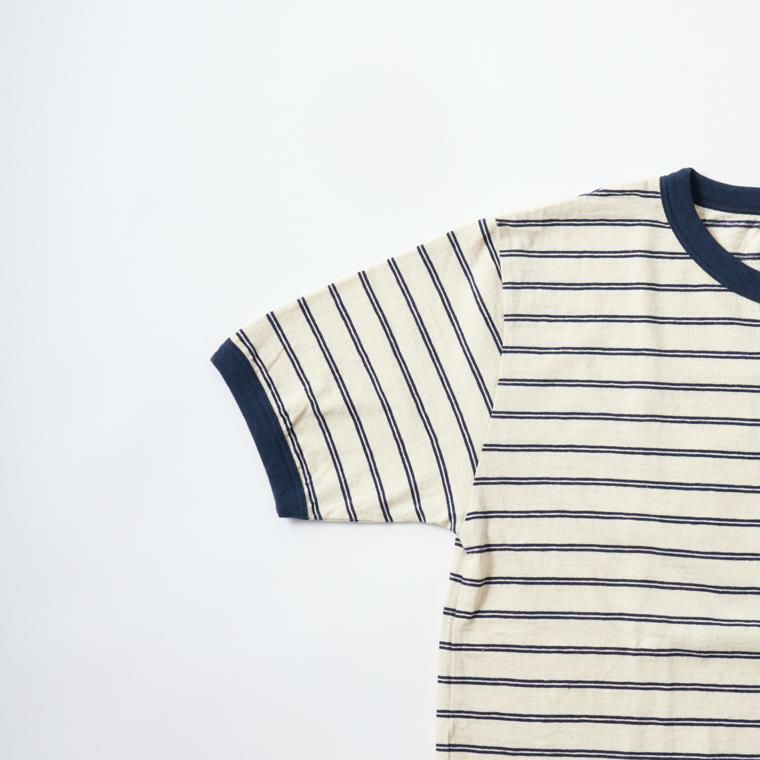 他の画像を見る メンズ リンガー ポケットTシャツ ヴィンテージストライプ 日本製 FELCO (フェルコ) S/S RINGER POCKET TEE VINTAGE STRIPE - NATURAL NAVY ¥ 7,920 税込 お気に入りに登録する