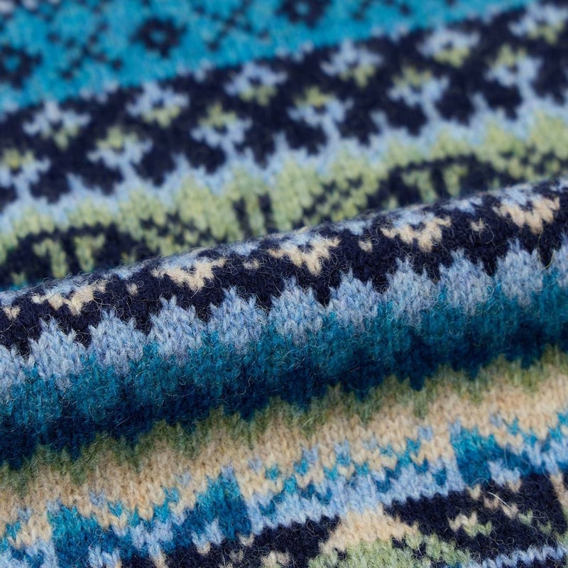 HARLEY OF SCOTLAND(ハーレーオブスコットランド)のALL OVER FAIRISLE SLIPOVER 100% PURE NEW WOOL。Vネックのフェアアイルベスト。スコットランド・シェットランド諸島産の上質なウール素材を使用。鮮やかな幾何学模様に編み立てたミドルゲージのフェアアイルニット。 ナチュラルな柔らかい風合い、軽くて暖かい着心地が特徴的なベストです。アウター、インナーどちらでも対応可能。スタイリングのアクセントとして取り入れやすいオススメの1着です。