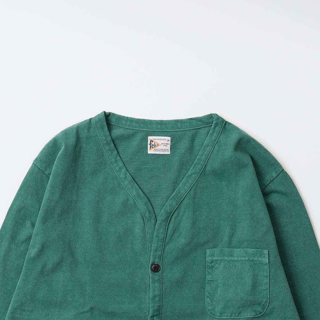 他の画像を見る メンズ バインダーVネック 7オンス シングル ジャージー カーディガン 日本製 FELCO (フェルコ) L/S BINDER V NECK CARDIGAN W/POCKET 7oz 16SINGLE RUFFY JERSEY - PGR GREEN 販売価格 ¥ 12,100 税込 お気に入りに登録する