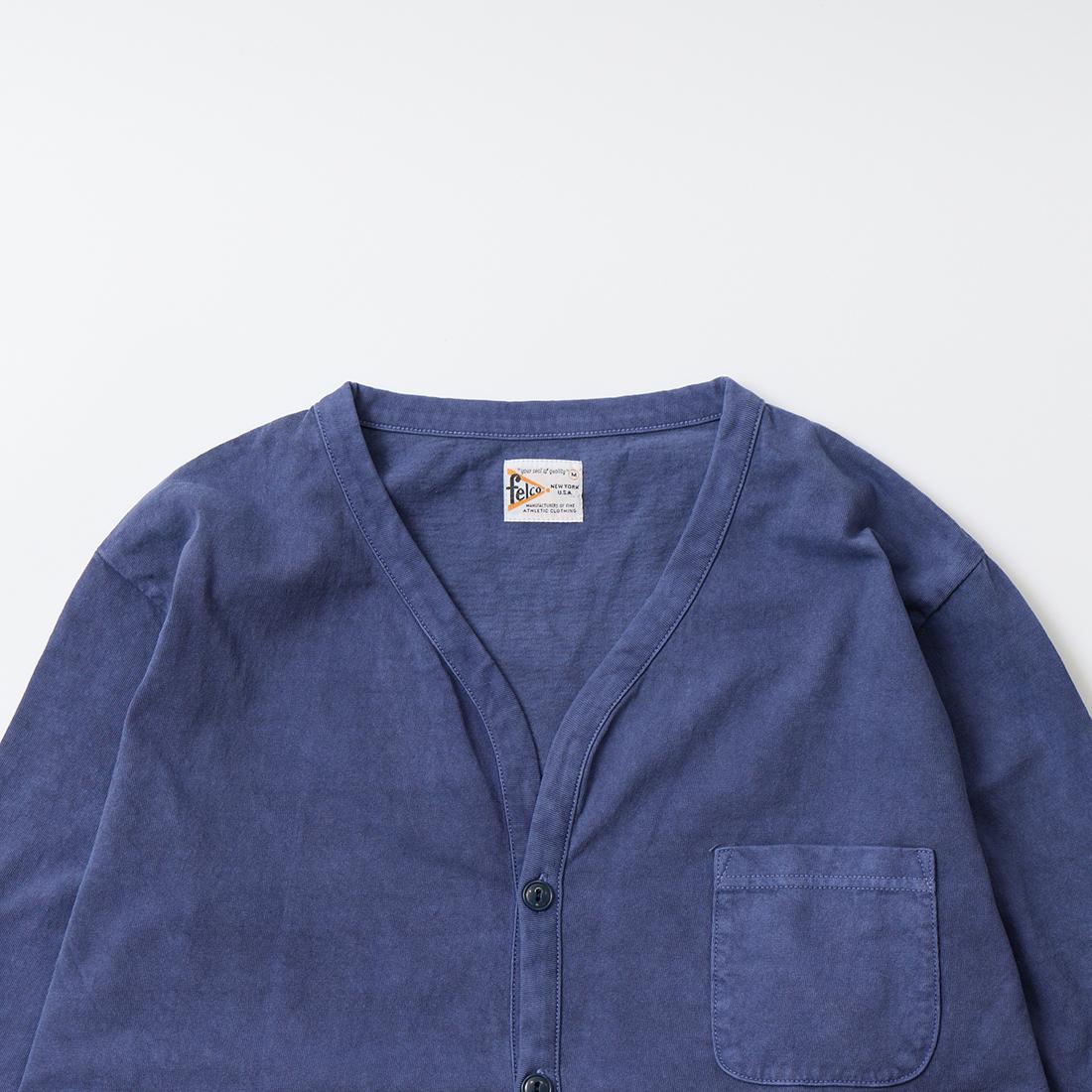 他の画像を見る メンズ バインダーVネック 7オンス シングル ジャージー カーディガン 日本製 FELCO (フェルコ) L/S BINDER V NECK CARDIGAN W/POCKET 7oz 16SINGLE RUFFY JERSEY - PGR NAVY 販売価格 ¥ 12,100 税込 お気に入りに登録する