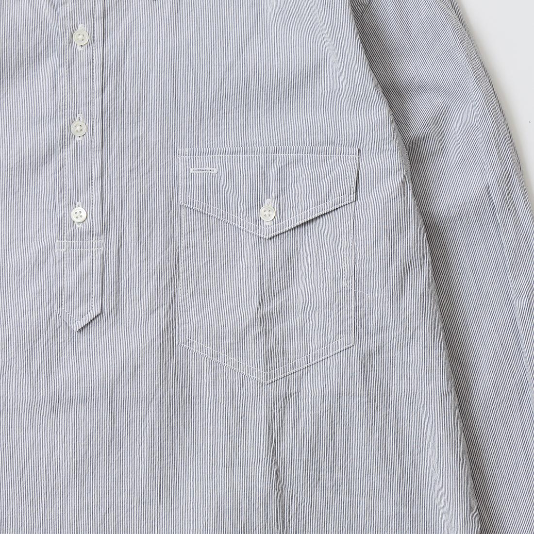 他の画像を見る 長袖 ハーフジップ ワークシャツ ヒッコリーストライプ メンズ 日本製 EMPIRE & SONS (エンパイア アンド サンズ) L/S HALF ZIP WORK SHIRT HICKORY STRIPE - NAVY 販売価格 ¥ 20,900 税込 お気に入りに登録する