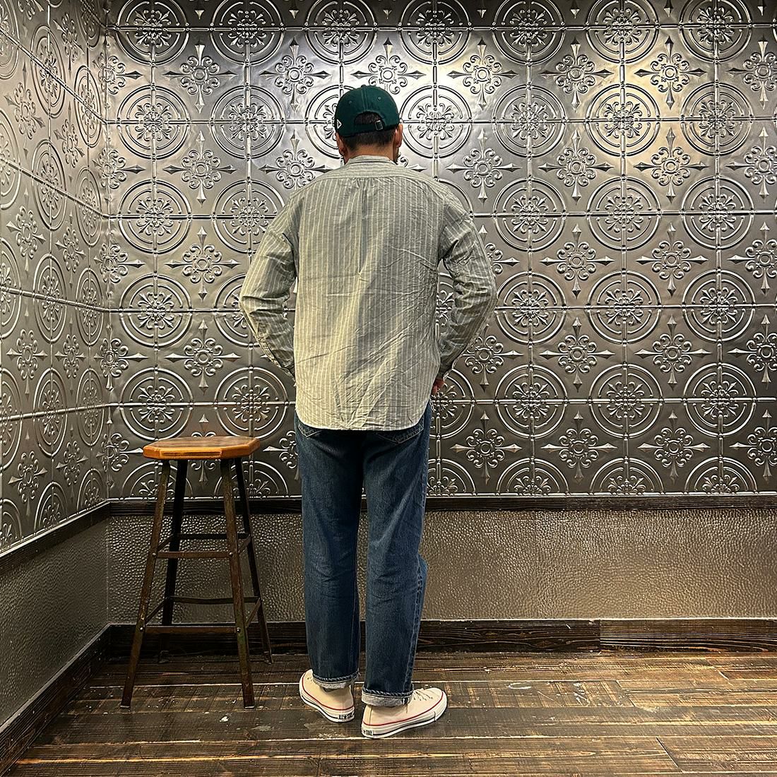 他の画像を見る バンドカラーシャツ MV ストライプ シーチング 日本製 POST OVERALLS (ポストオーバーオールズ) BAND COLLAR SHIRT MV STRIPE SHIRTING - INDIGO 販売価格 ¥ 33,000 税込 お気に入りに登録する