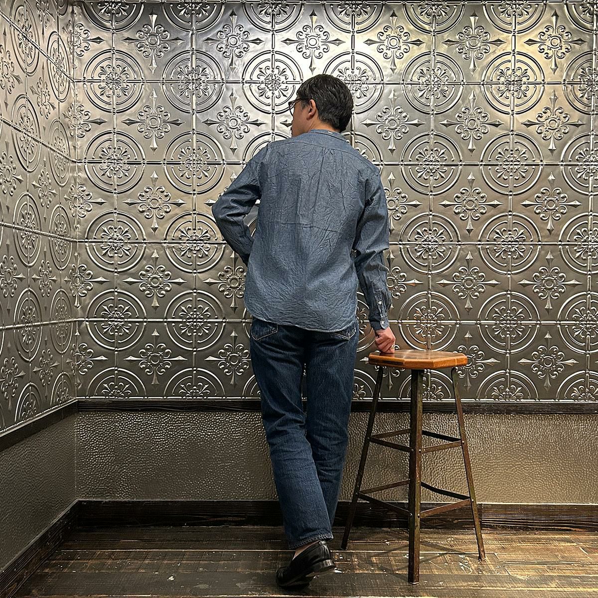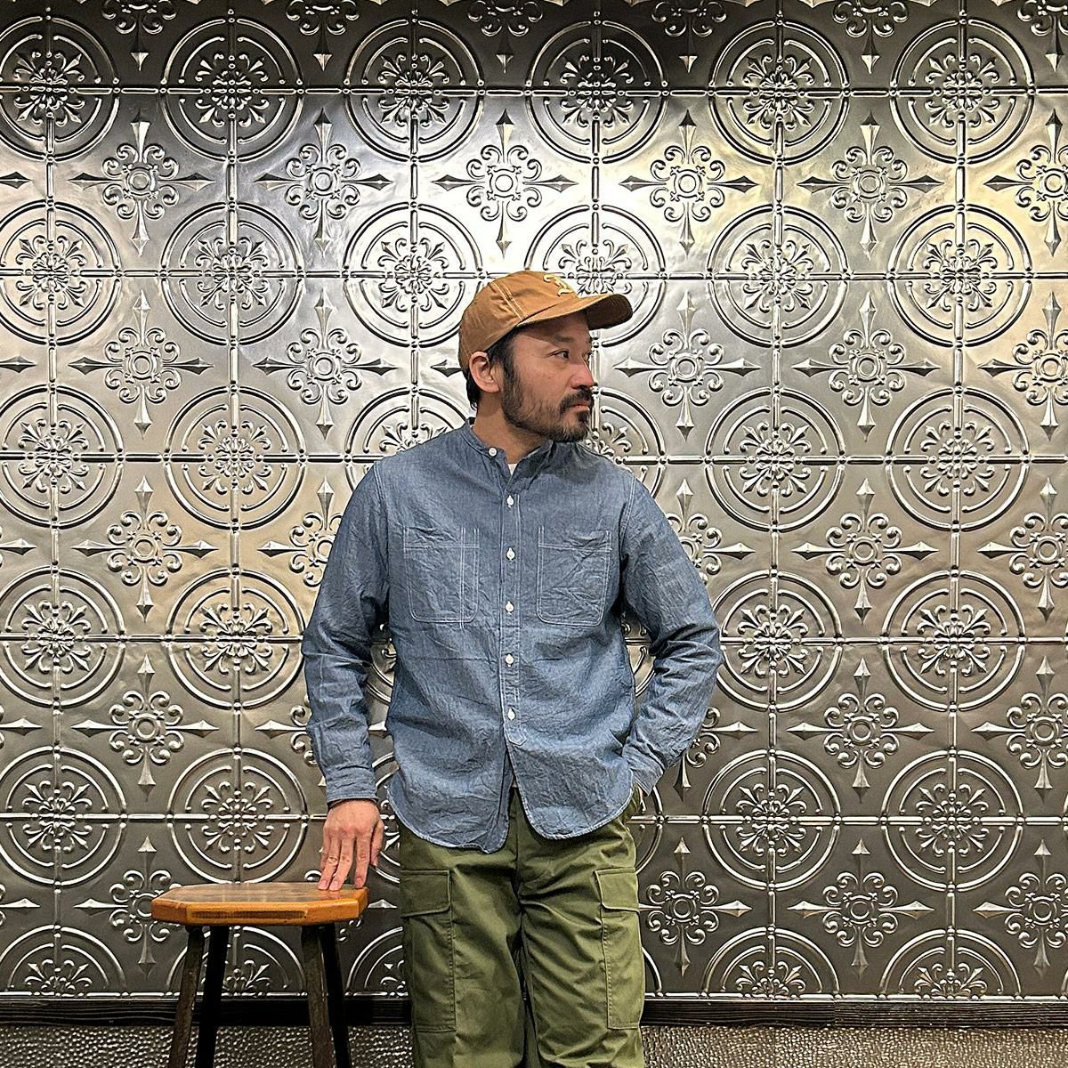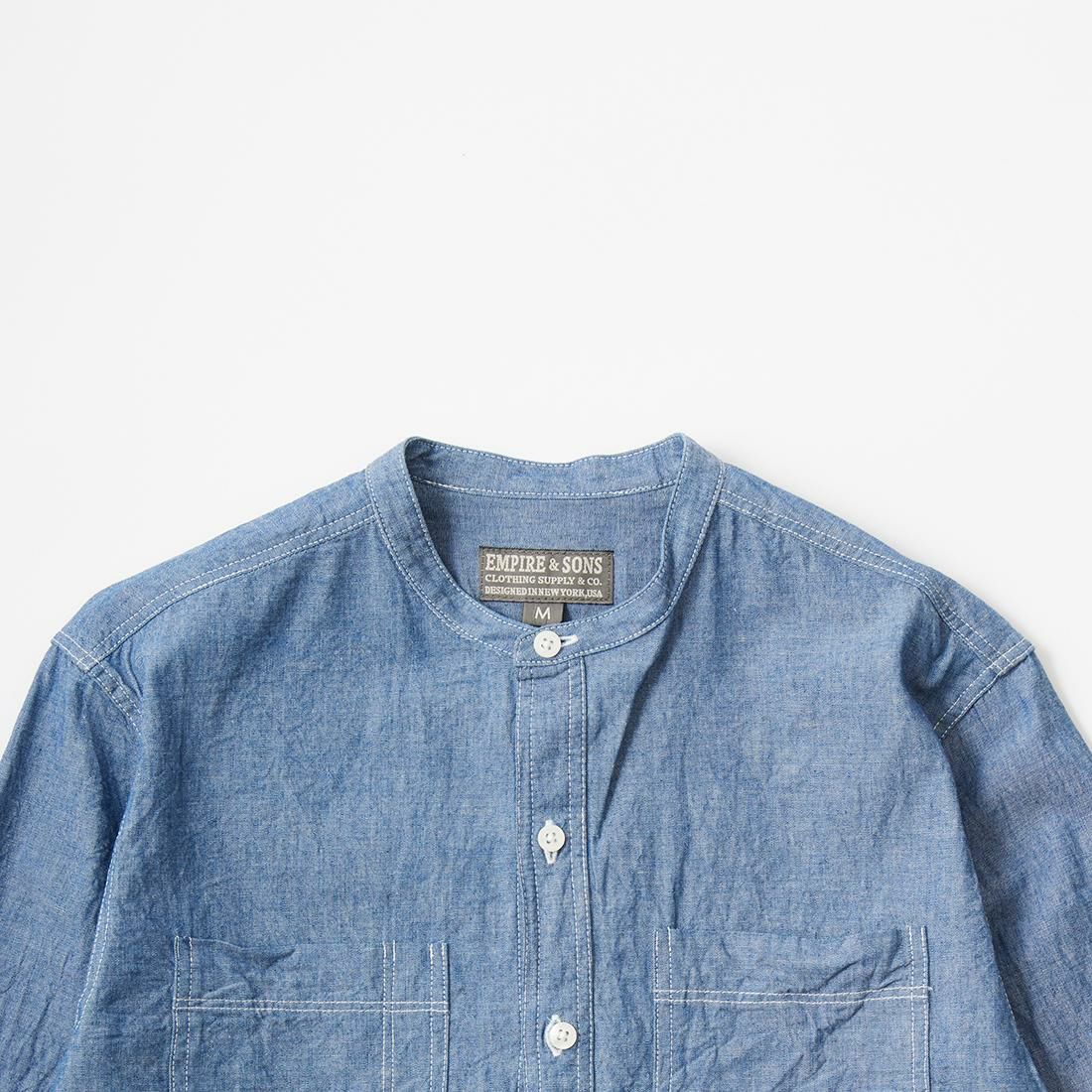 他の画像を見る バンドカラーシャツ 5オンス ヴィンテージシャンブレー 日本製 EMPIRE & SONS (エンパイア アンド サンズ) L/S BAND COLLAR SHIRT 5oz VINTAGE CHAMBRAY - BLUE_NATURAL STITCH 販売価格 ¥ 18,480 税込 お気に入りに登録する