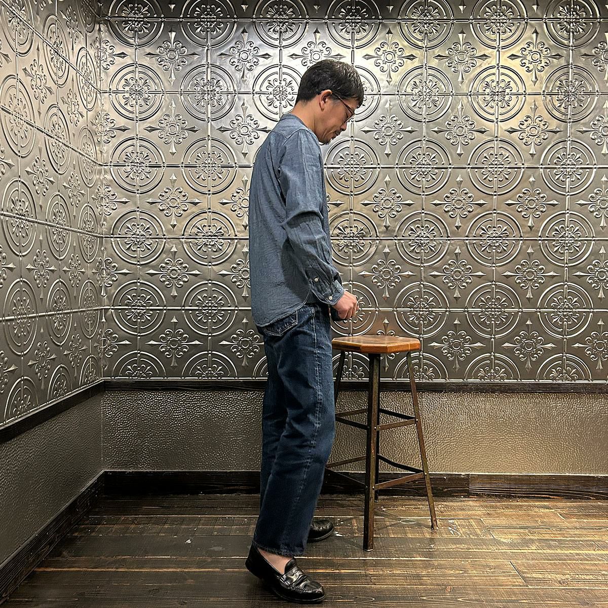 他の画像を見る クラシック バンドカラーシャツ 5オンス ヴィンテージシャンブレー 日本製 国産 EMPIRE & SONS (エンパイア アンド サンズ) L/S CLASSIC BAND COLLAR SHIRT 5oz VINTAGE CHAMBRAY - BLUE 販売価格 ¥ 18,480 税込 お気に入りに登録する