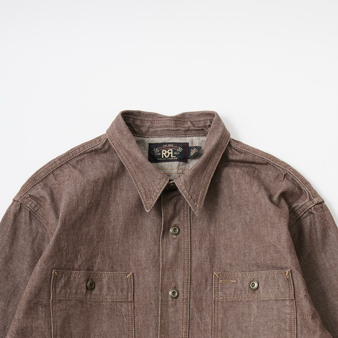 他の画像を見る [正規取扱店] Double RL / ダブルアールエル 2025春夏新入荷 RRL Ralph Lauren (ダブル アールエル ラルフローレン) HARVEST WS LONG SLEEVE SPORT SHIRT 2X1 DENIM - BROWN 販売価格 ¥ 48,400 税込 お気に入りに登録する