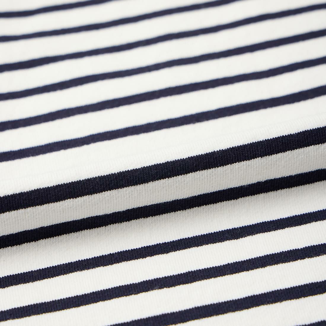他の画像を見る モックネック ナローストライプ ポケットTシャツ 日本製 FELCO (フェルコ) S/S MOCK NECK NARROW STRIPE POCKET T - ECRU NATURAL RIB 販売価格 ¥ 8,250 税込 お気に入りに登録する