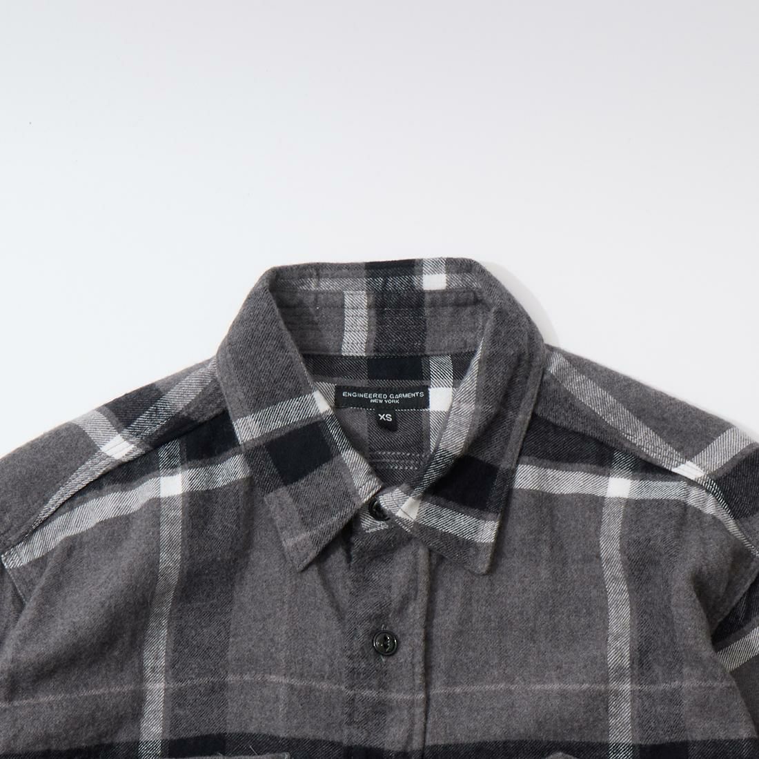 他の画像を見る 2025秋冬新作 RV019 ワークシャツ コットンブラッシュド ビッグプレイド ENGINEERED GARMENTS (エンジニアドガーメンツ) WORK SHIRT COTTON BRUSHED BIG PLAID - GREY_BLACK 販売価格 ¥ 39,600 税込 × 在庫切れ お気に入りに登録する