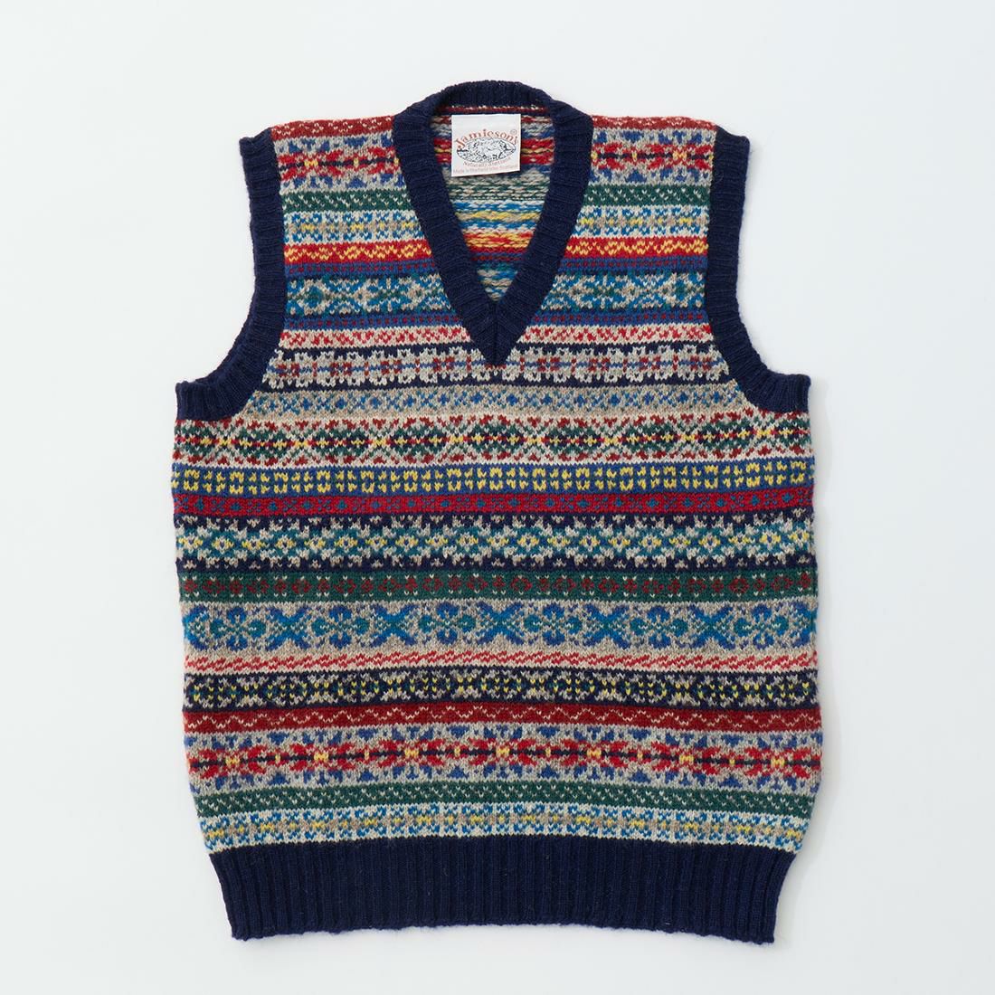 他の画像を見る フェアアイル柄 Vネック ニット ベスト メンズ スコットランド製 JAMIESON'S (ジャミーソンズ) AOFI VEE NECK SLIPOVER - 8310_15 販売価格 ¥ 35,200 税込 お気に入りに登録する