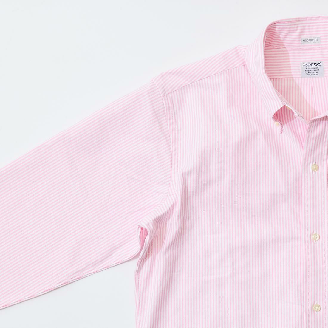 他の画像を見る モディファイド 6ボタン ボタンダウン スーピマオックスフォードシャツ 日本製 WORKERS (ワーカーズ) MODIFIED 6 BUTTON BD SUPIMA OX - STRIPE PINK 販売価格 ¥ 18,700 税込 お気に入りに登録する