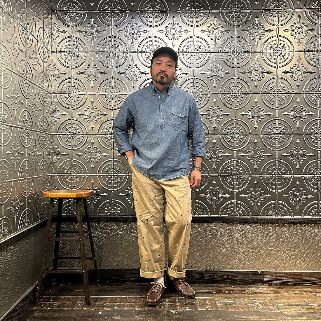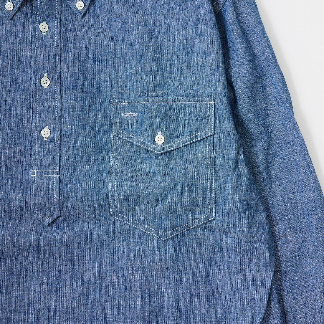 他の画像を見る メンズ クラシックフィット プルオーバー ボタンダウン 5オンス インディゴ シャンブレーシャツ 日本製 KEATON CHASE USA (キートンチェイスUSA) L/S CLASSIC FIT PULLOVER BD SHIRT 5oz INDIGO CHAMBRAY - BLUE CHAMBRAY 販売価格 ¥ 19,800 税込 お気に入りに登録する
