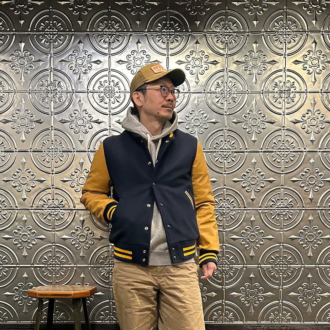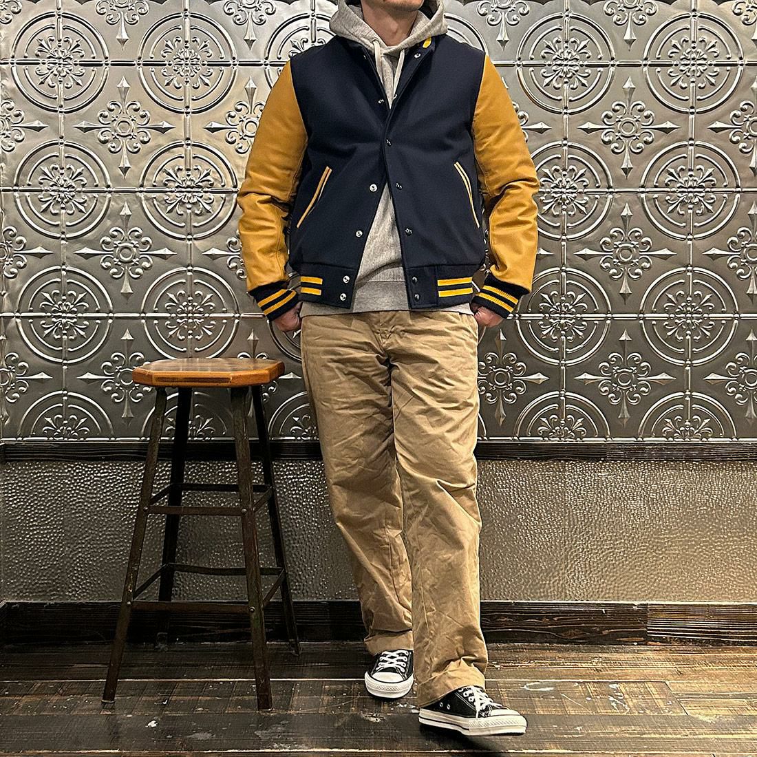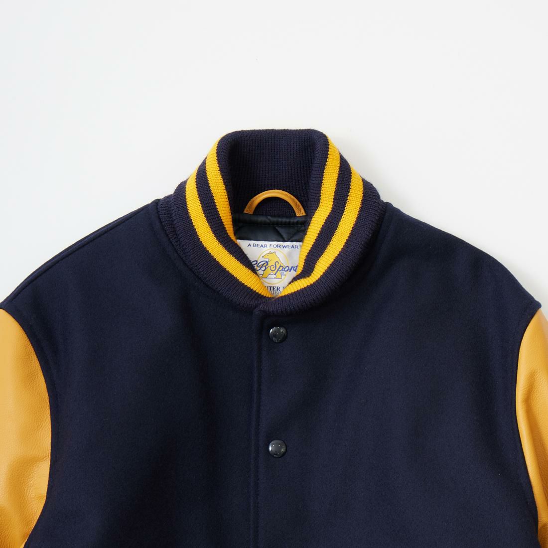 他の画像を見る メンズ アウター スタジャン アメリカ製 アメカジ GB SPORTS (ジービースポーツ) THE ALBANY - CLASSIC FIT SNAP FRONT WOOL LEATHER VARSITY JACKET QUILT LINING - NAVY MELTON_CREAM COW LEATHER 販売価格 ¥ 118,800 税込 お気に入りに登録する