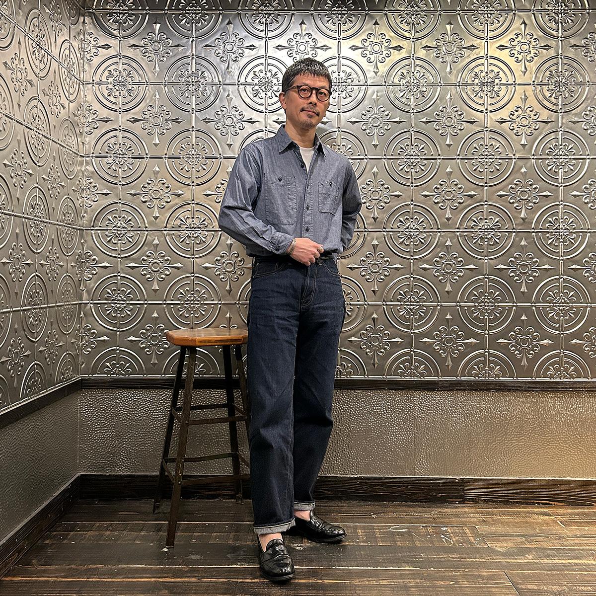 他の画像を見る ワークシャツ ヴィンテージ シャンブレー メンズ 日本製 EMPIRE & SONS (エンパイア アンド サンズ) L/S WORK SHIRT VINTAGE CHAMBRAY - BLACK 販売価格 ¥ 22,000 税込 お気に入りに登録する