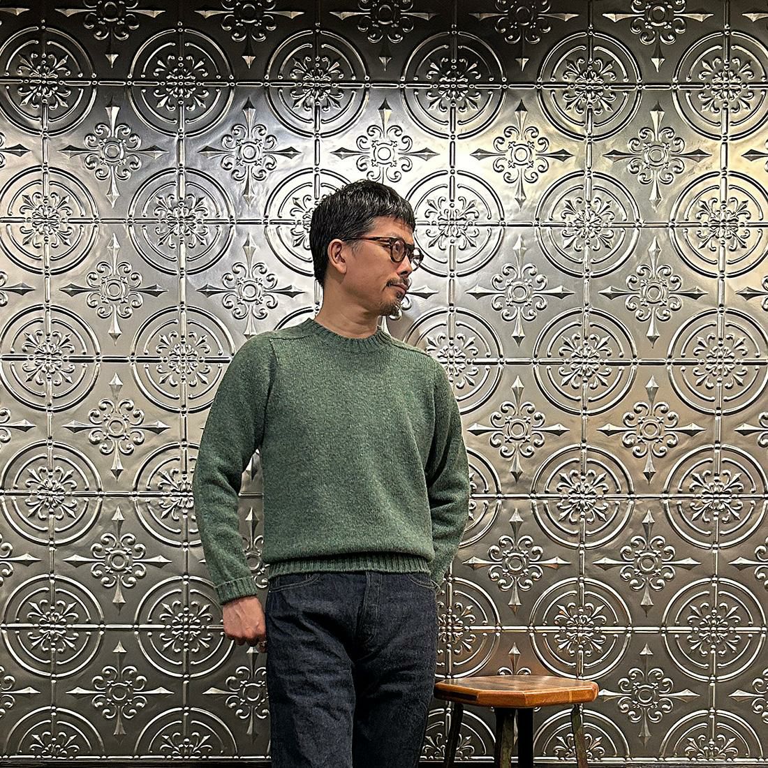 他の画像を見る サドルショルダー クルーネック ニット スコットランド製 JAMIESON'S (ジャミーソンズ) 3PLY PLAIN SADDLE SHOULDER CREW NECK WHOLE GARMENTS - 286 MOORGRASS 販売価格 ¥ 27,500 税込 お気に入りに登録する