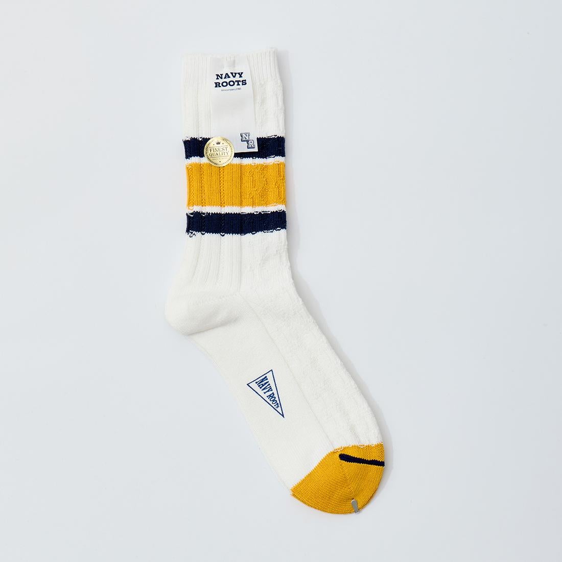 他の画像を見る ケーブル ボーダー ソックス 靴下 メンズ 日本製 NAVY ROOTS (ネイビールーツ) CABLE BORDER SOCKS - YELLOW 販売価格 ¥ 1,980 税込 × 在庫切れ お気に入りに登録する