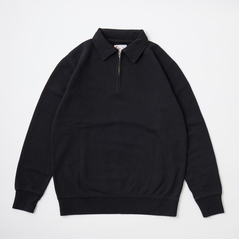 5. FELCO (フェルコ) 10oz LT WEIGHT FRENCH TERRY L/S HALF ZIP COLLARED SWEATSHIRT - BLACK
