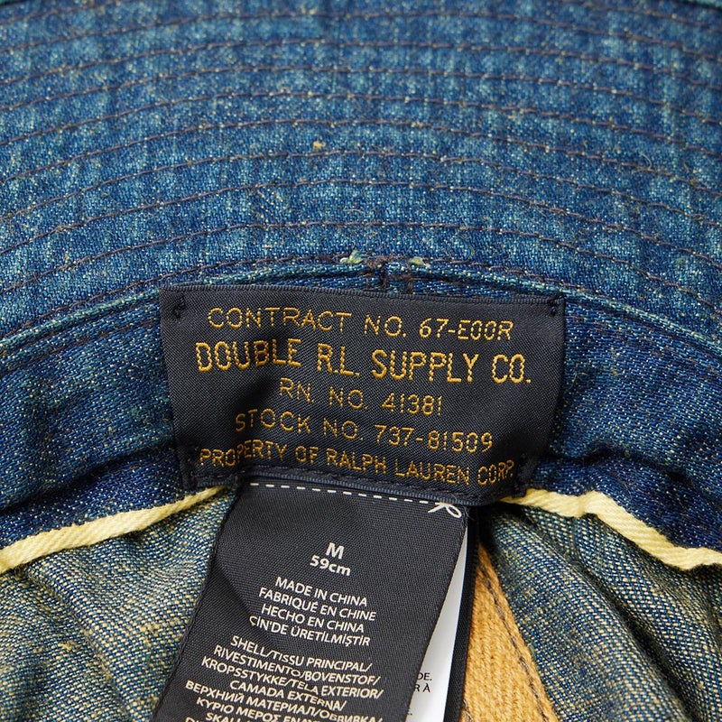 Double RL(ダブルアールエル)のDAISY MAE HAT COTTON DENIM。1940年代のUSネイビータイプの帽子。ライトオンスの日本製本藍染めコットンリネンデニムを使用。内側にセルビッジの裏地を採用するなどDouble RL(ダブルアールエル)の拘りが詰まった縫製仕様。ウォッシュ加工が施されており既に雰囲気は出ていますが更なる経年変化も楽しんで頂けるハット。
